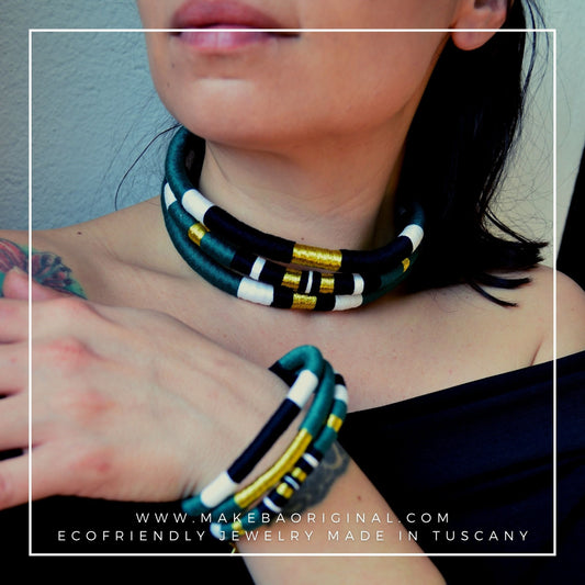 Bracciale Tri Cairo - Petrolio verde oro gold