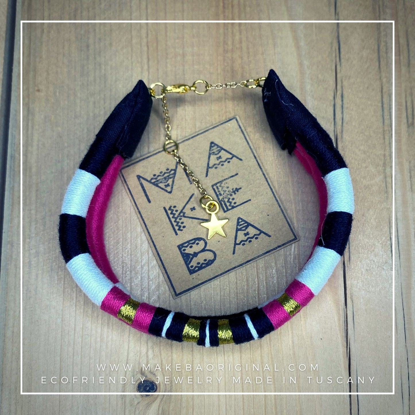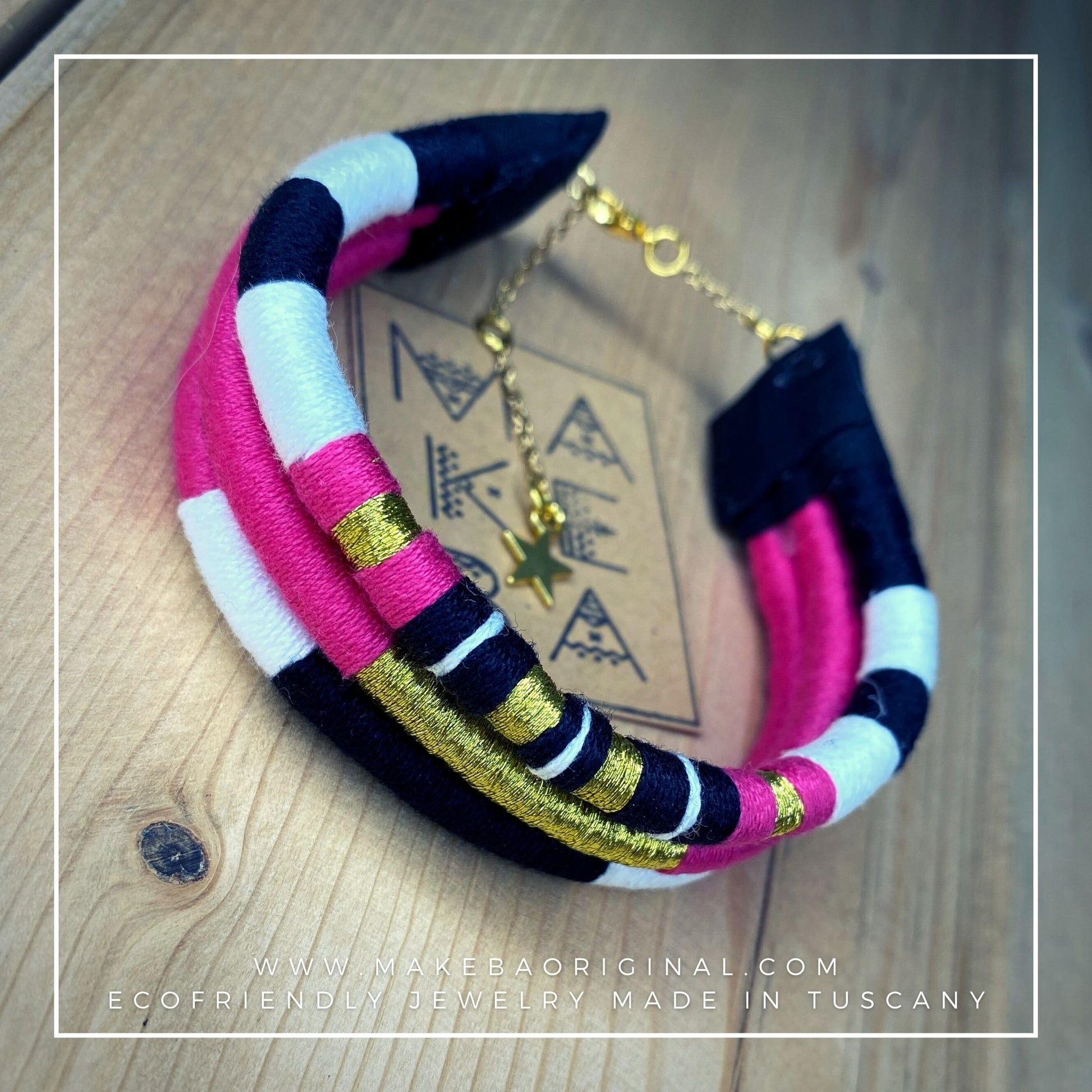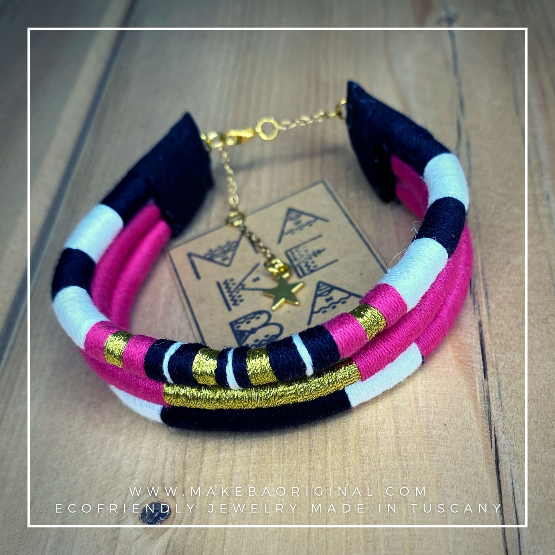 I cordini interni in plastica riciclata, non solo aiutano il pianeta, ma rendono il bracciale modellabile a vostro piacimento.