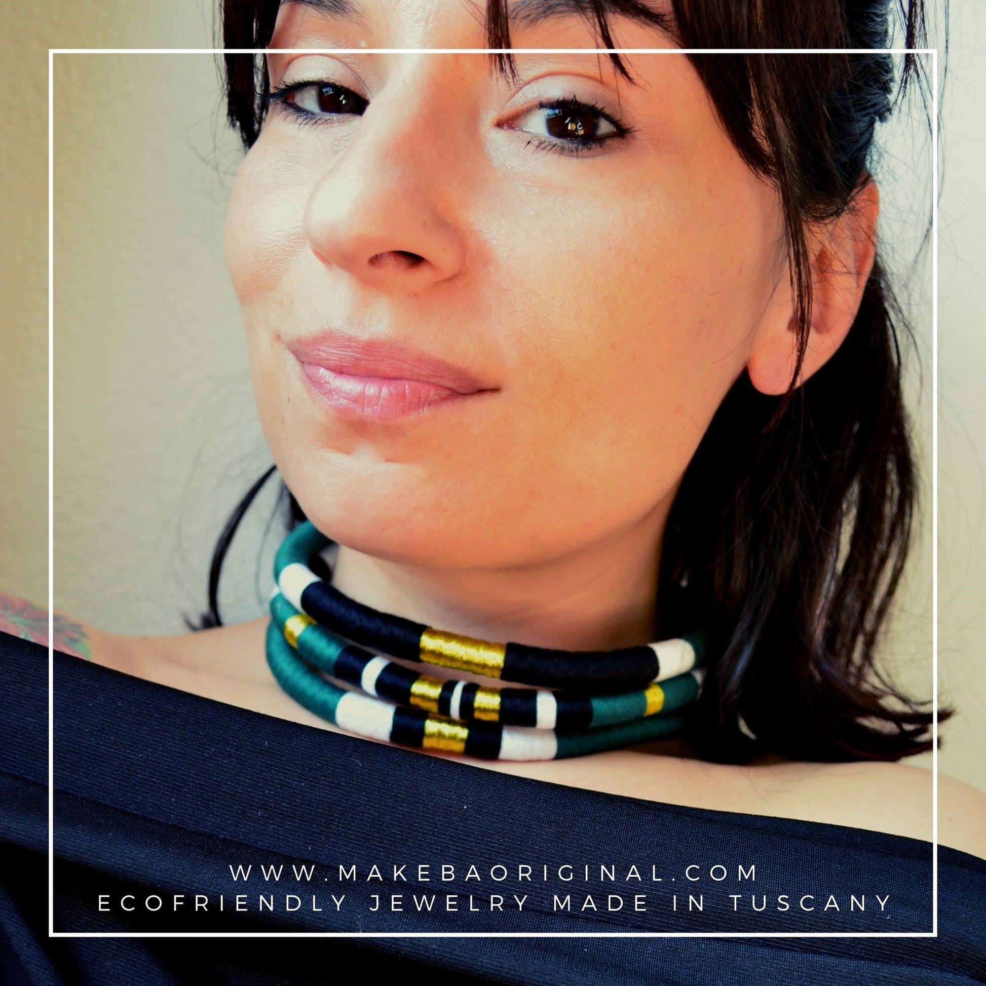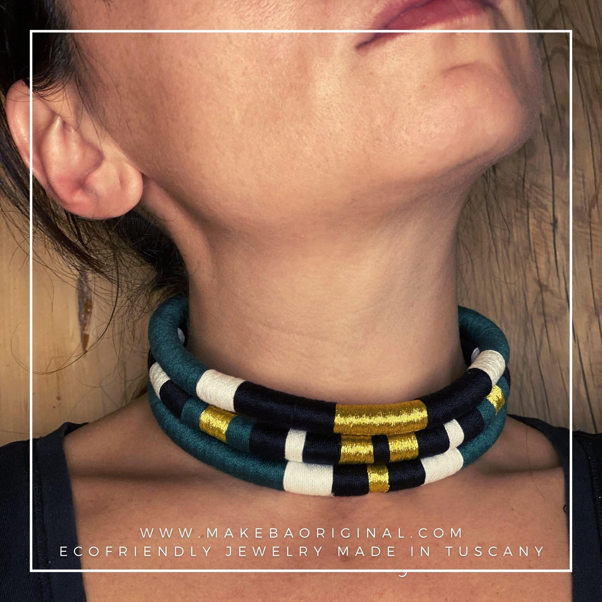 Per un look davvero WOW!, il collarino può essere indossato insieme alla collana abbinata Tri Cairo.