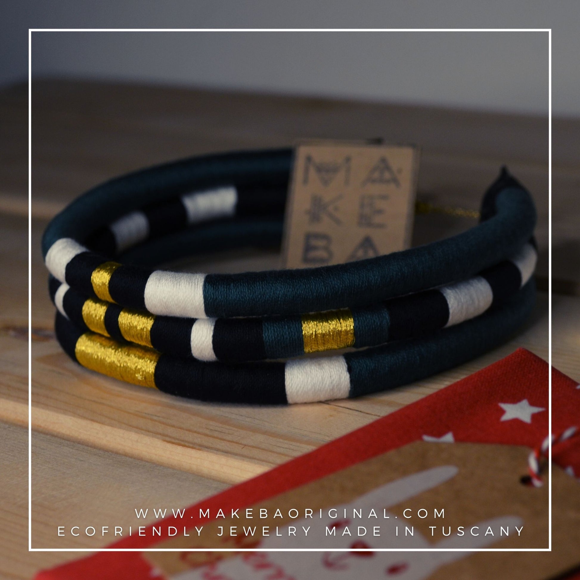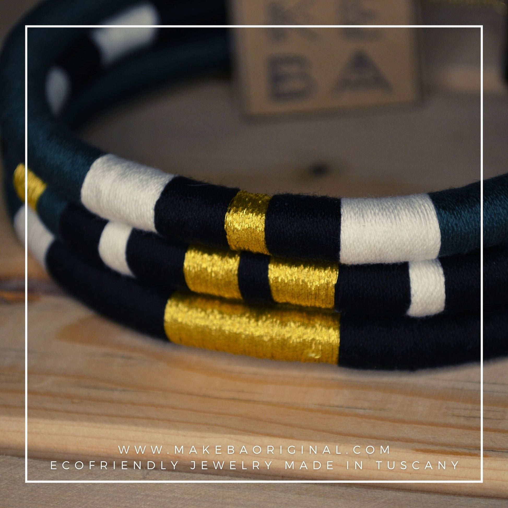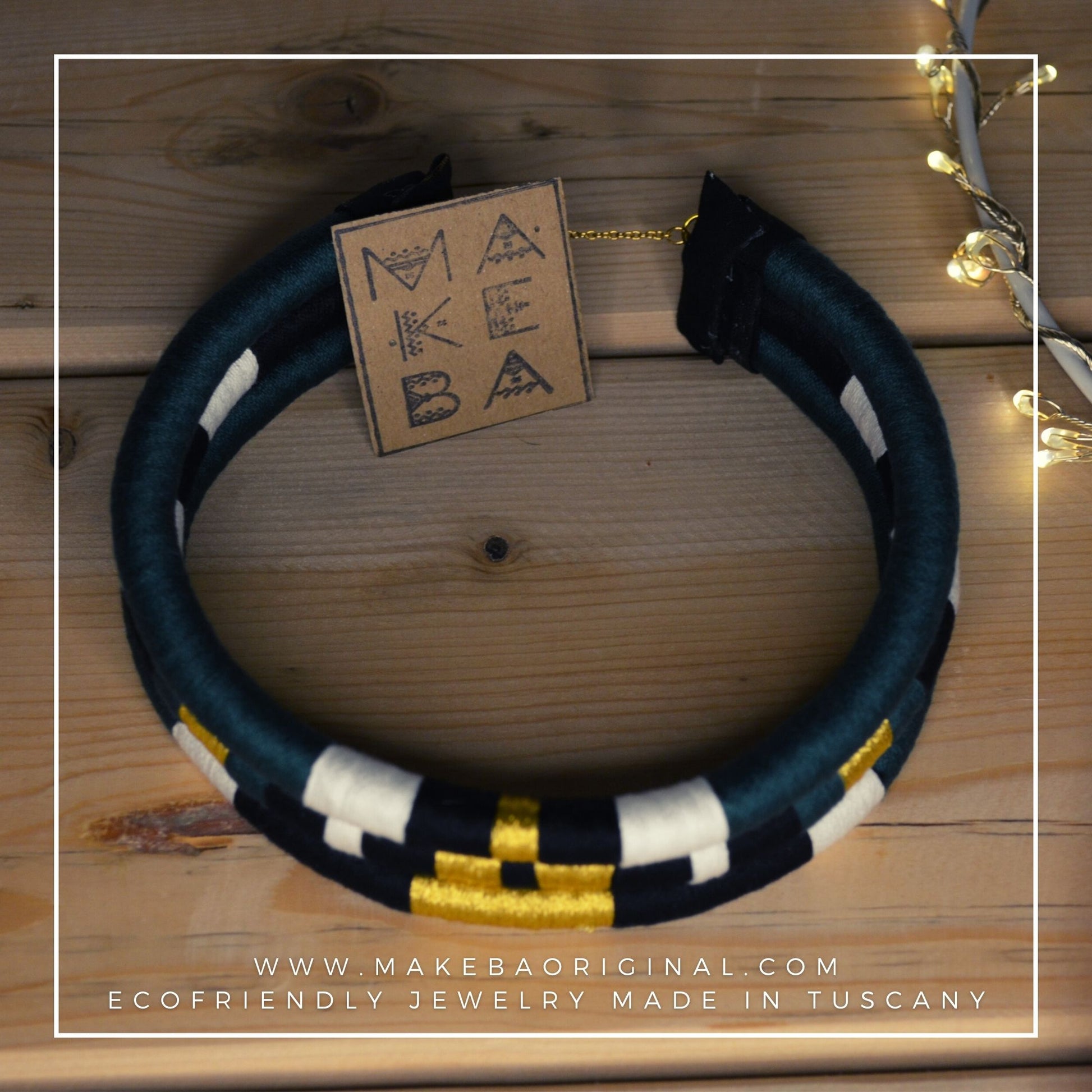 Collarino formato da 3 cordini con lavorazione alternante cotone e lamé color oro.