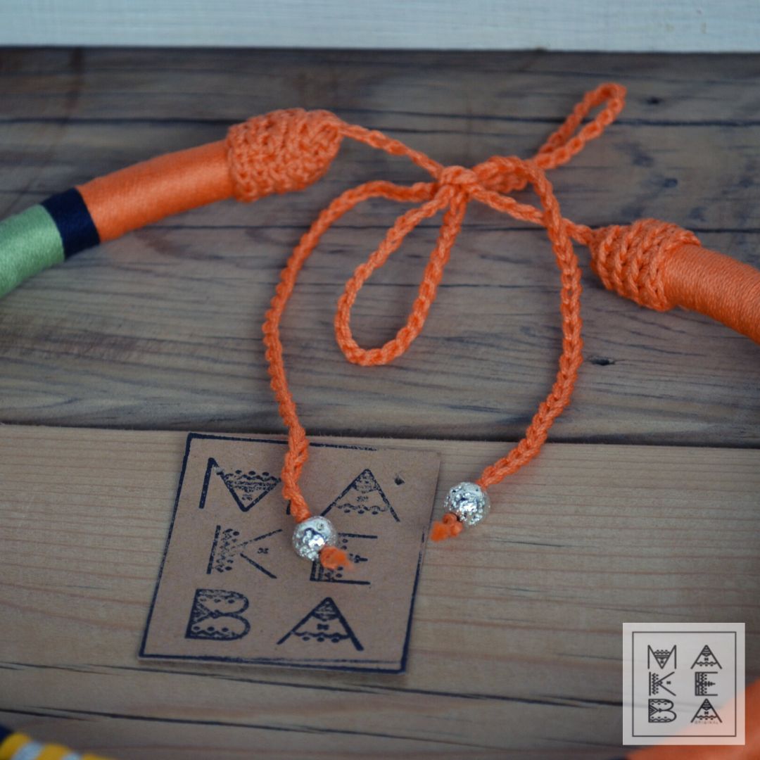 Il cordino ha una lunghezza di 39 cm circa. Grazie ai laccetti di chiusura in cotone, l'ornamento risulta regolabile dalla taglia S alla XL. (Per una estensione fino a 50 cm)