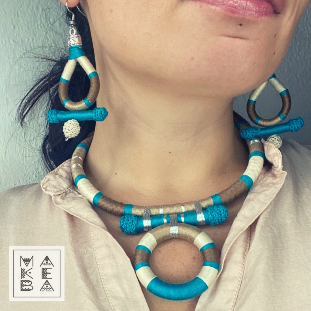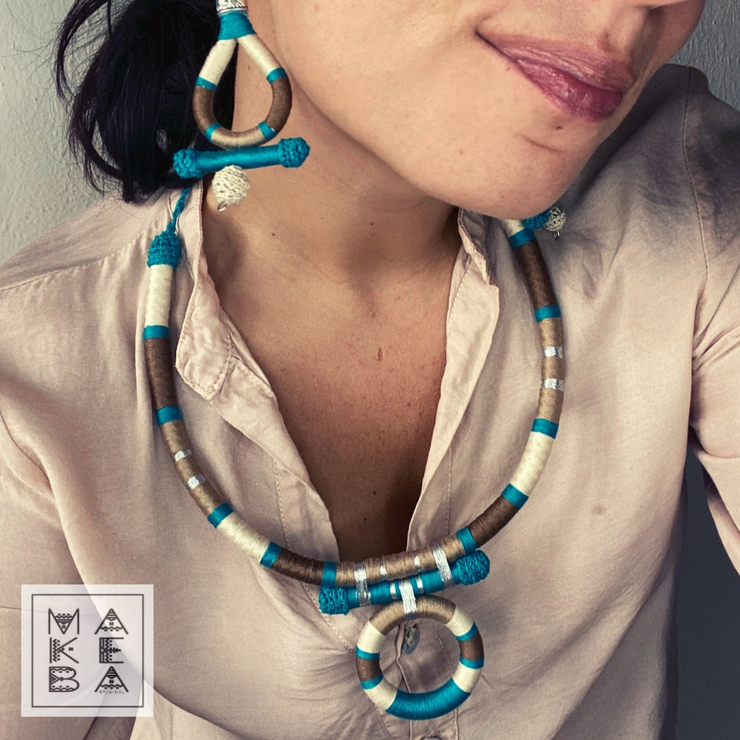 COLLANA ANTHEA - BEIGE PETROLIO CASTAGNA