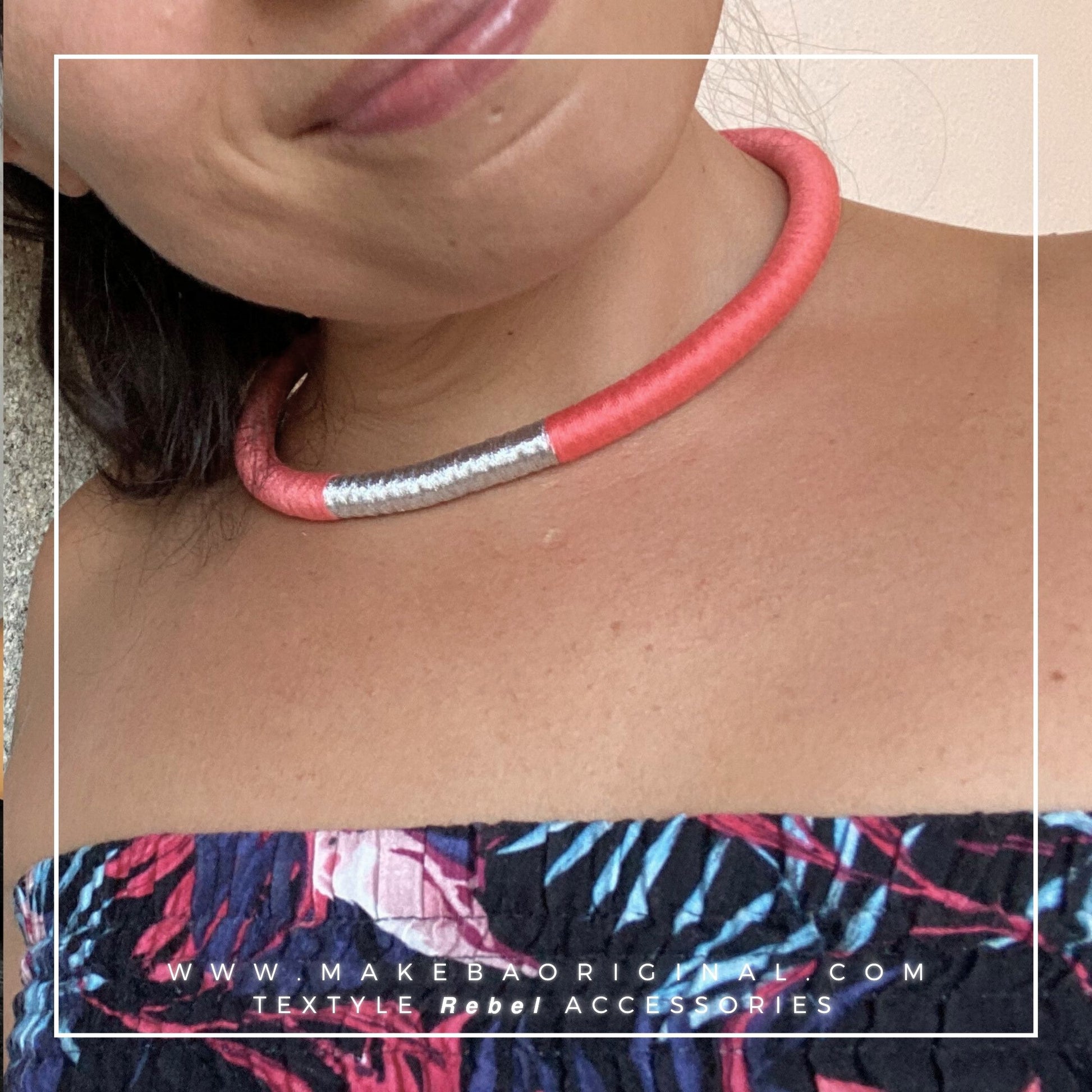 La Collana Classic è una collana artigianale semi-rigida, fatta a mano in cotone 100% con una raffinata lavorazione centrale in filo lamé argentato. Il suo design minimalista, ma ricercato, è ideale per chi ama uno stile unico, consapevole e distintivo.