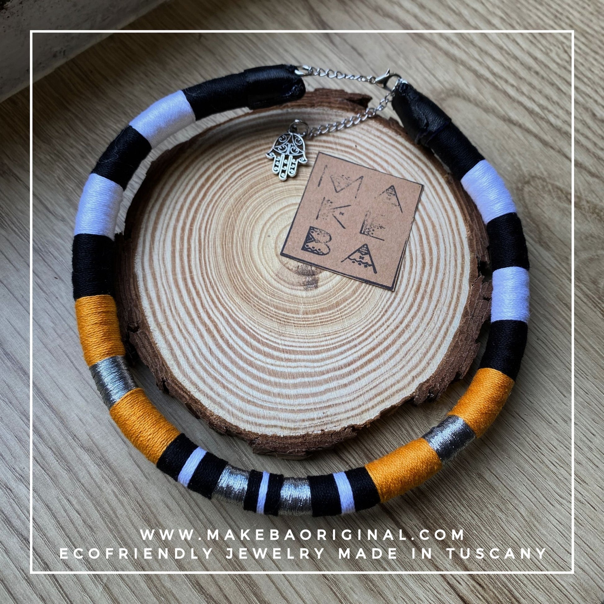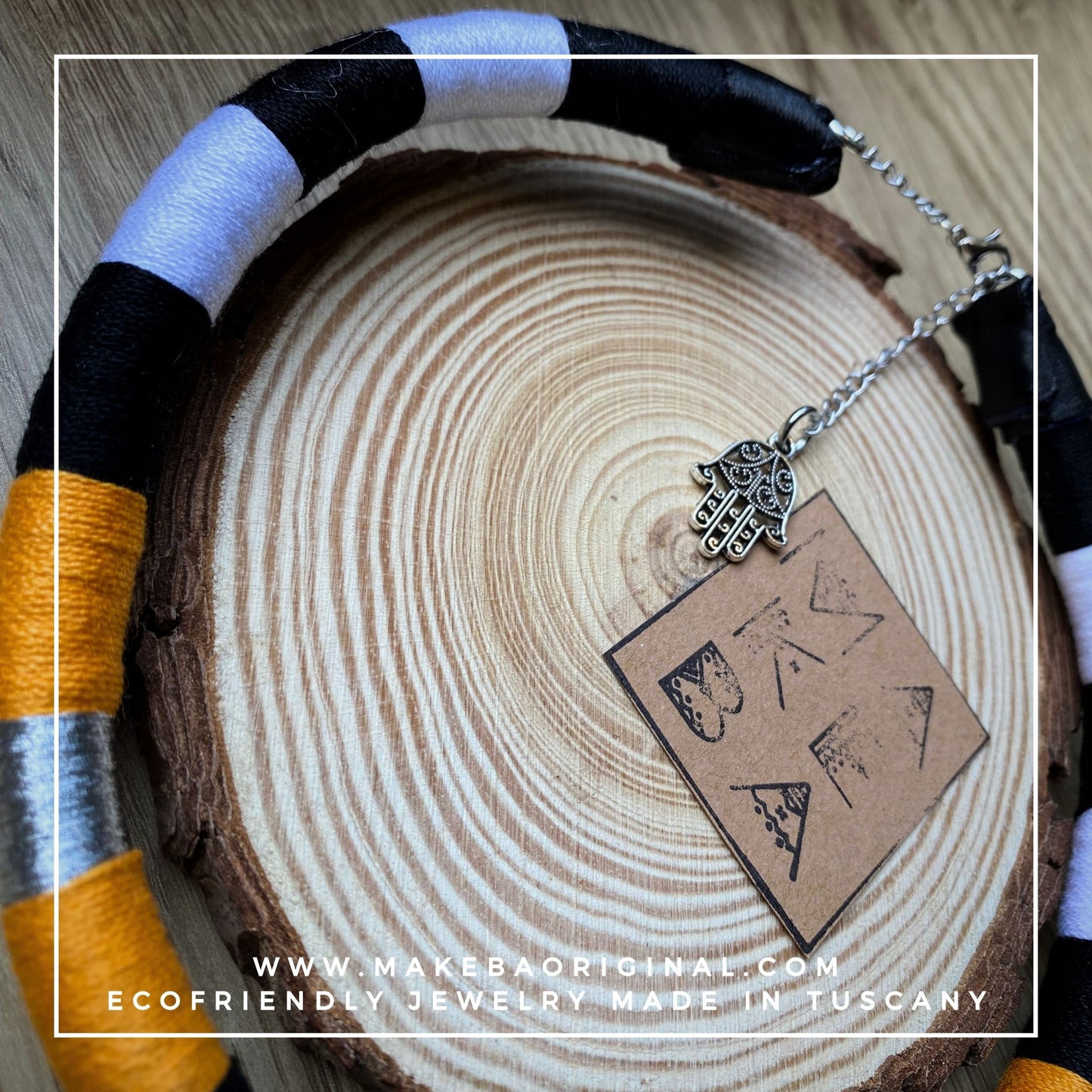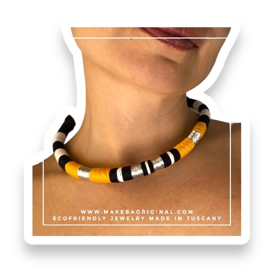 I cordini interni in plastica riciclata, non solo aiutano il pianeta, ma rendono la collana modellabile a vostro piacimento.