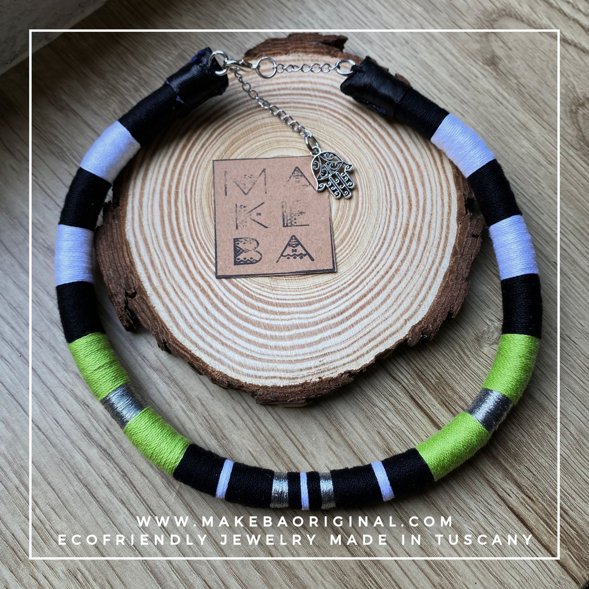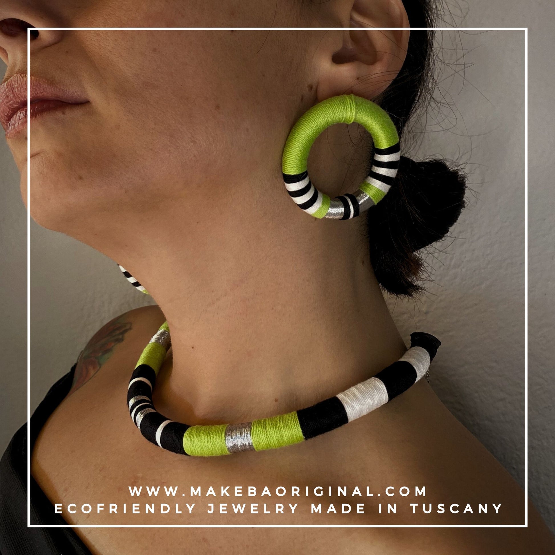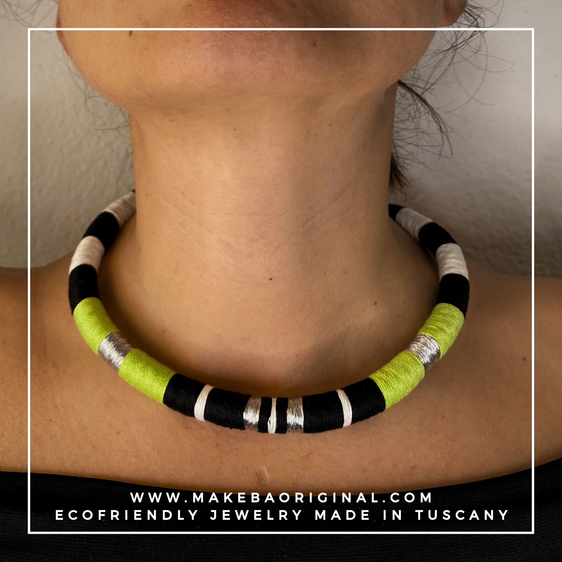 I cordini interni in plastica riciclata, non solo aiutano il pianeta, ma rendono la collana modellabile a vostro piacimento.