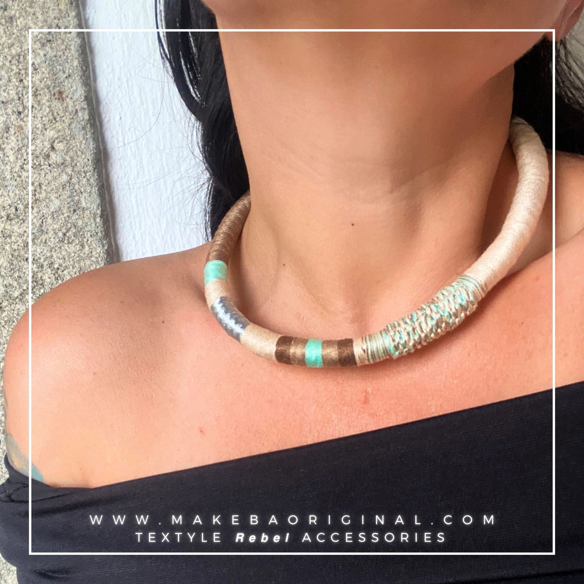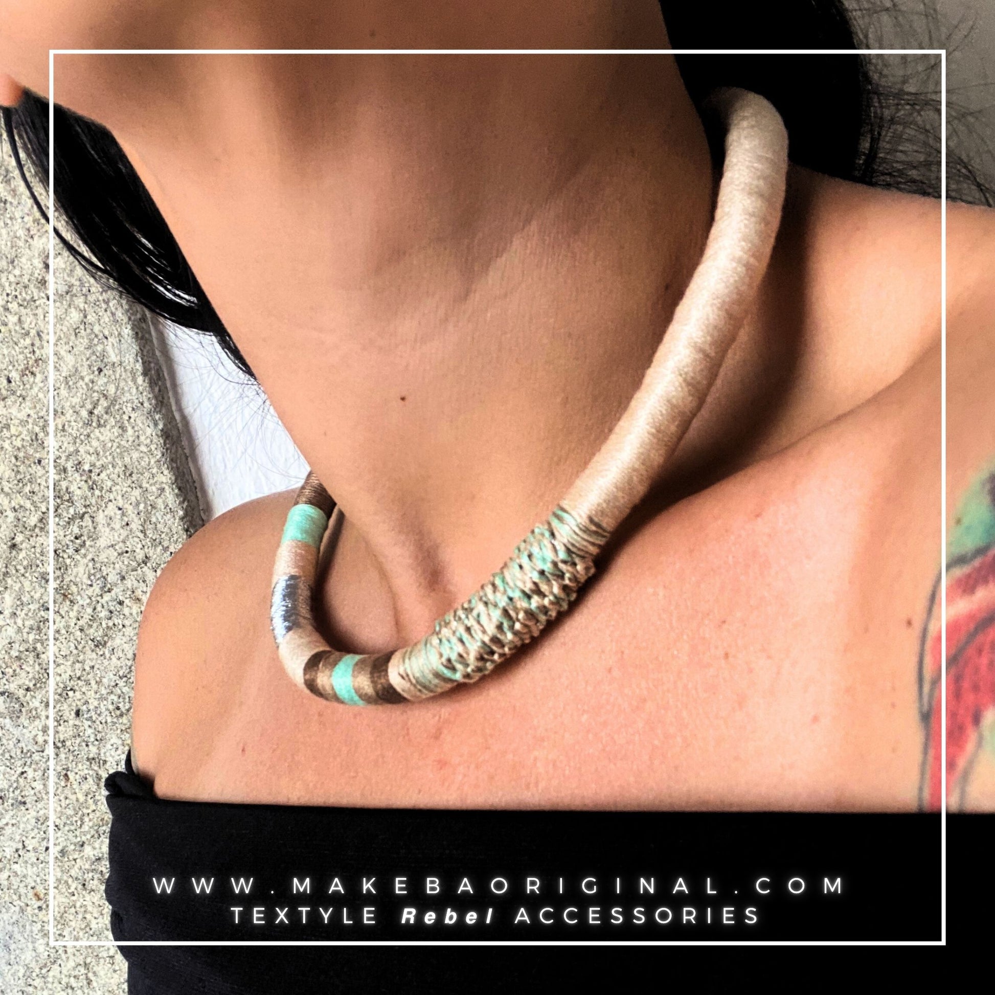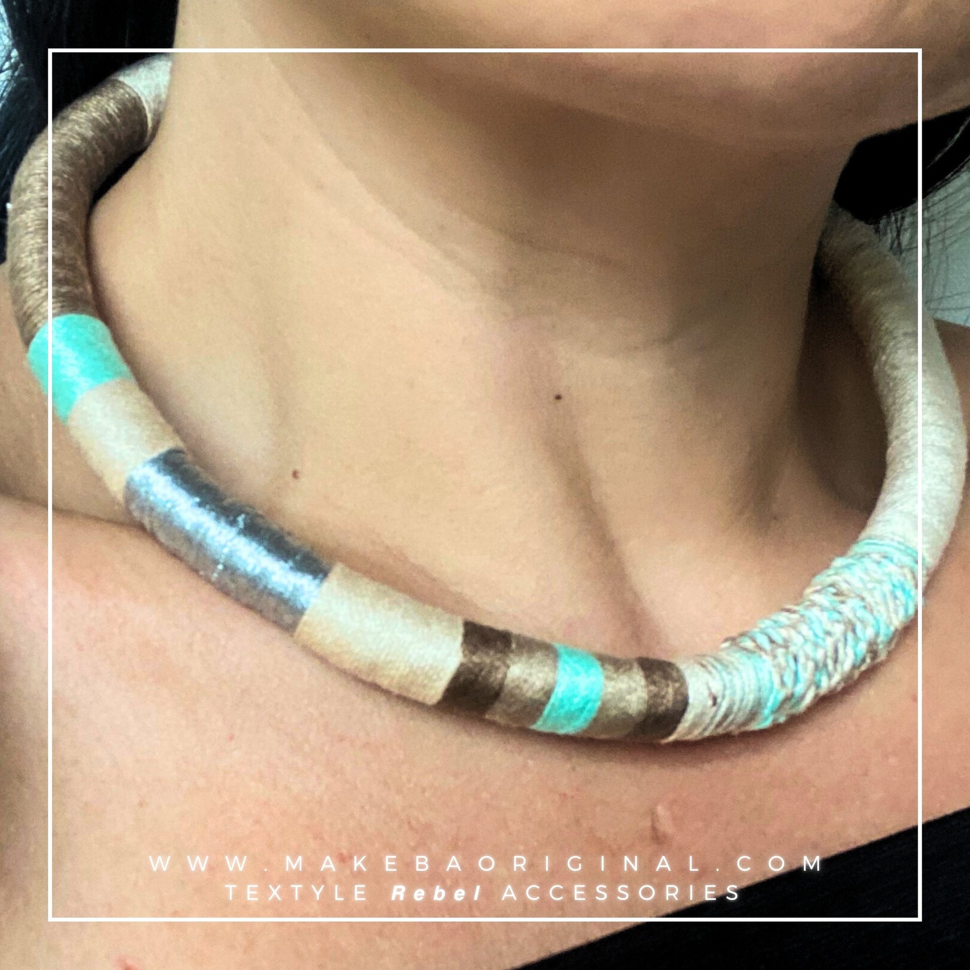 La collana si chiude creando un fiocco tramite il laccetto in cotone e veste dalla taglia S alla taglia XL
