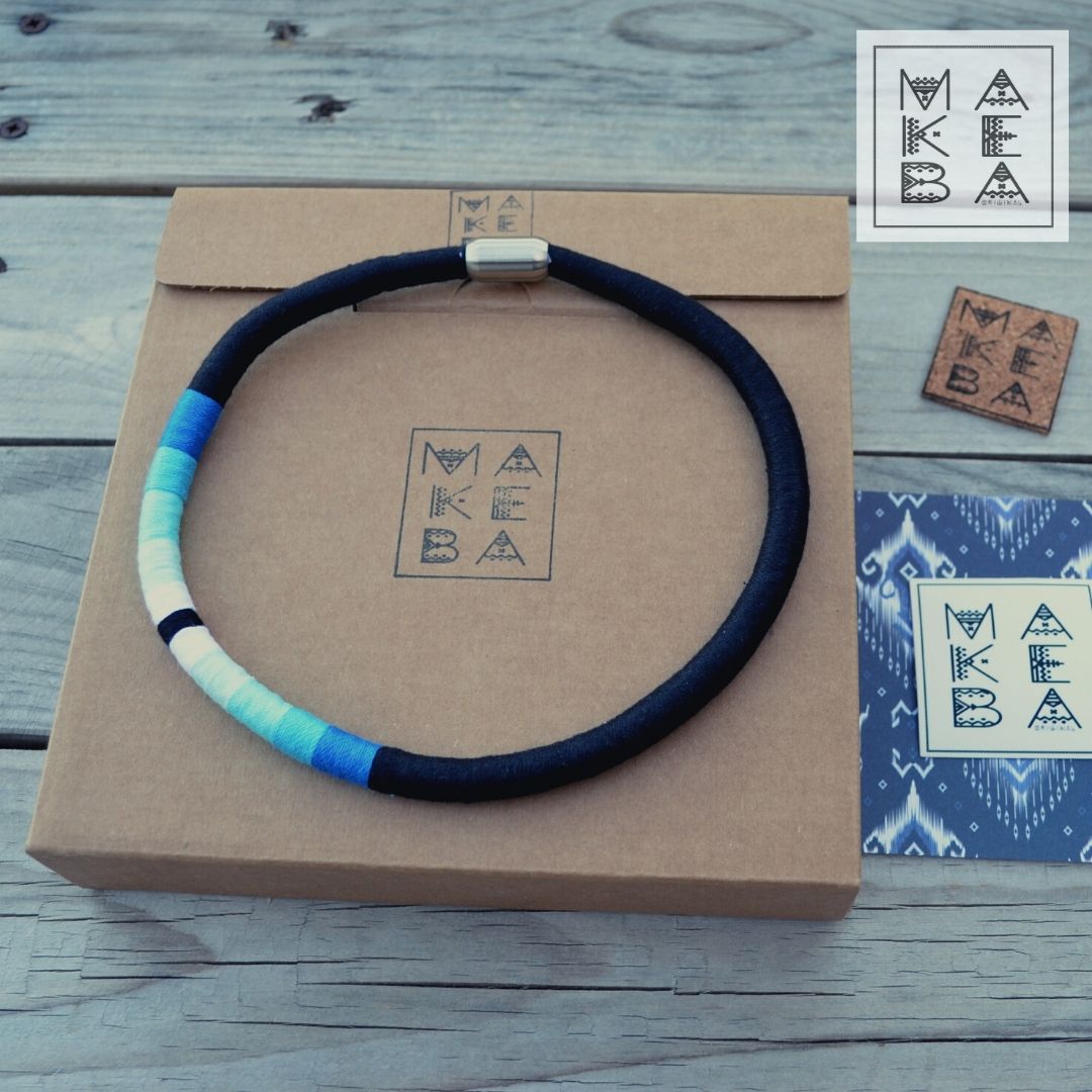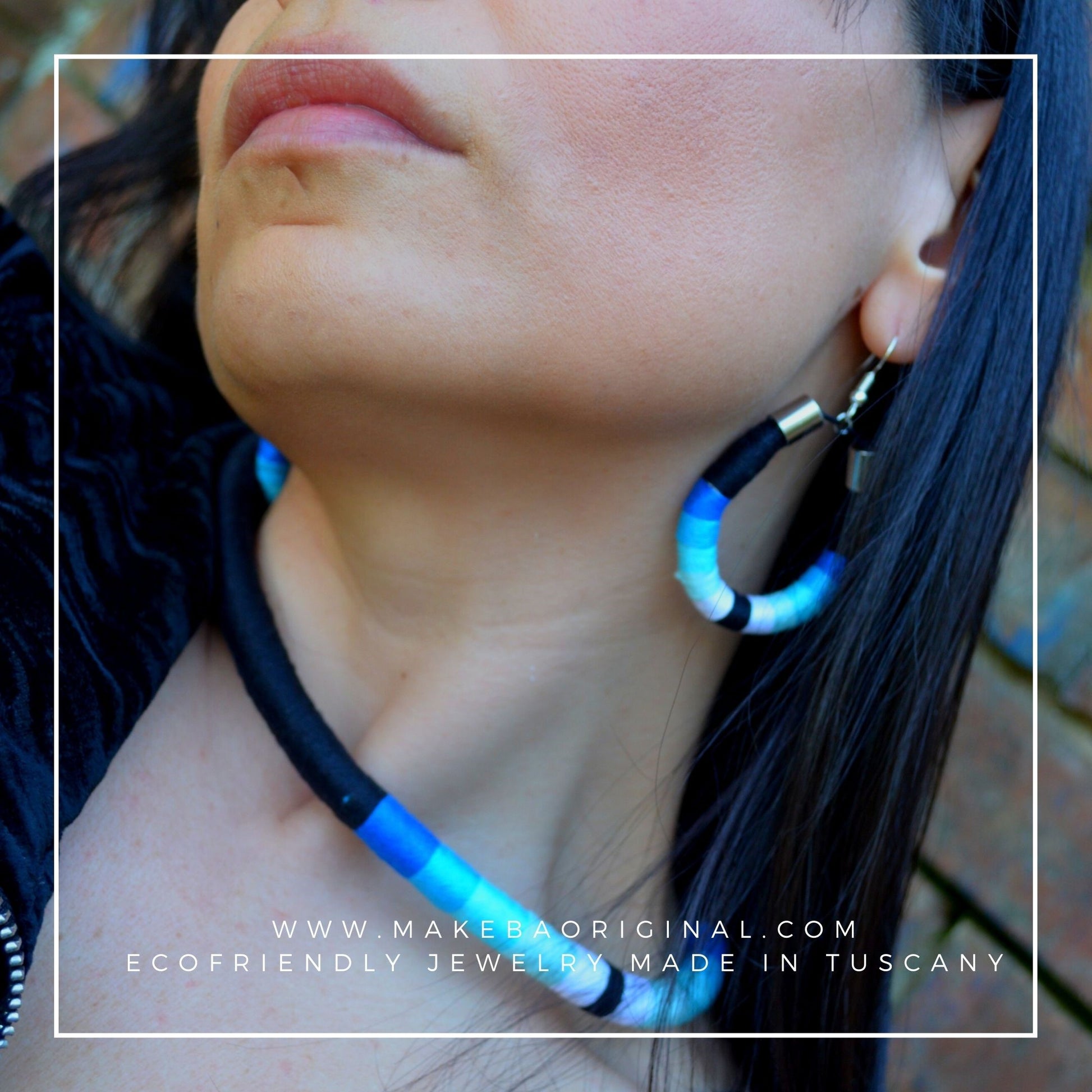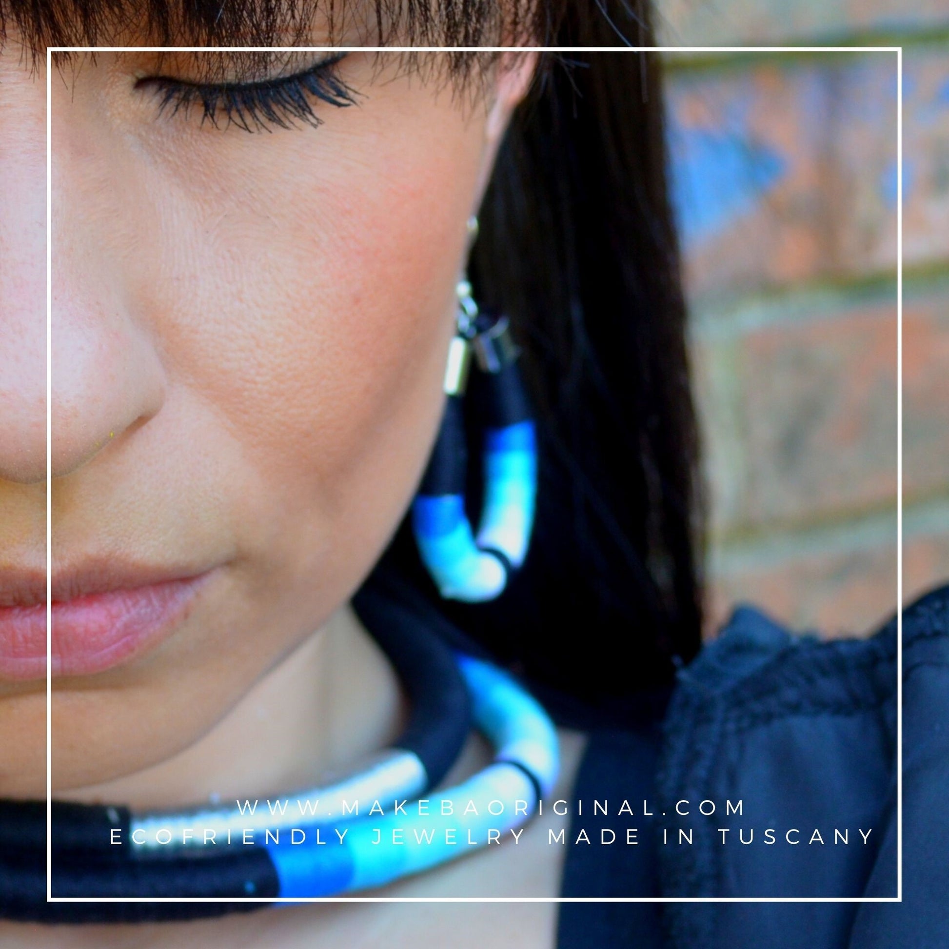Collana semi-rigida formata da un cordino ricoperto a mano in cotone 100%.
