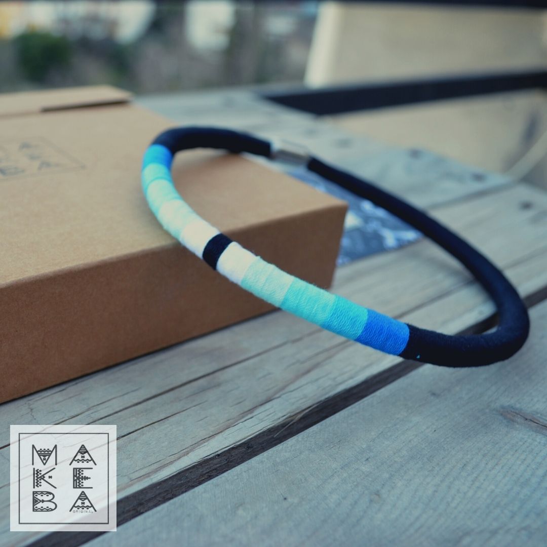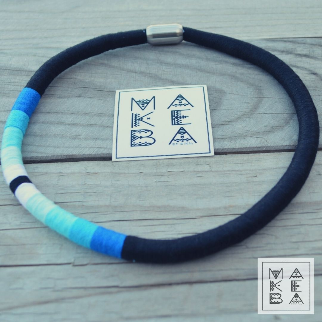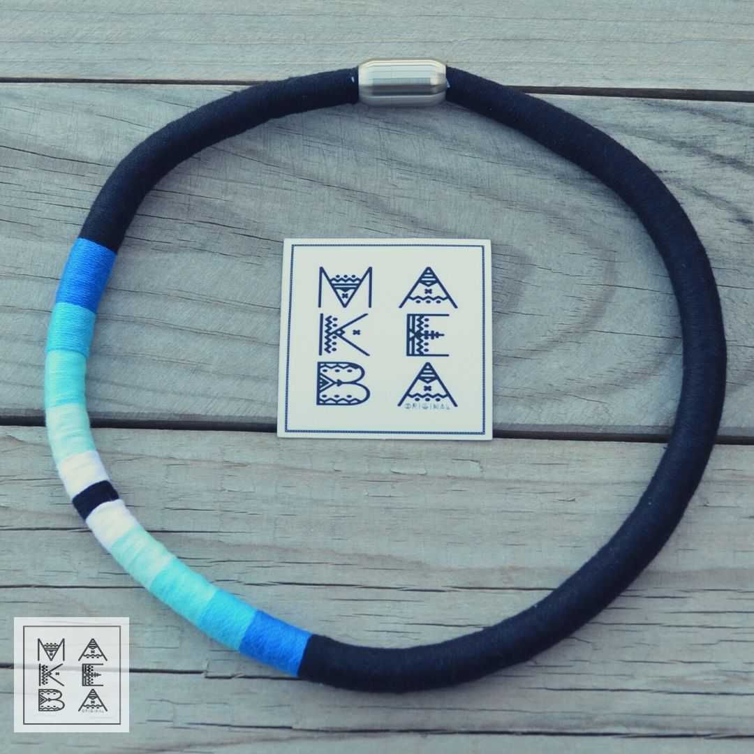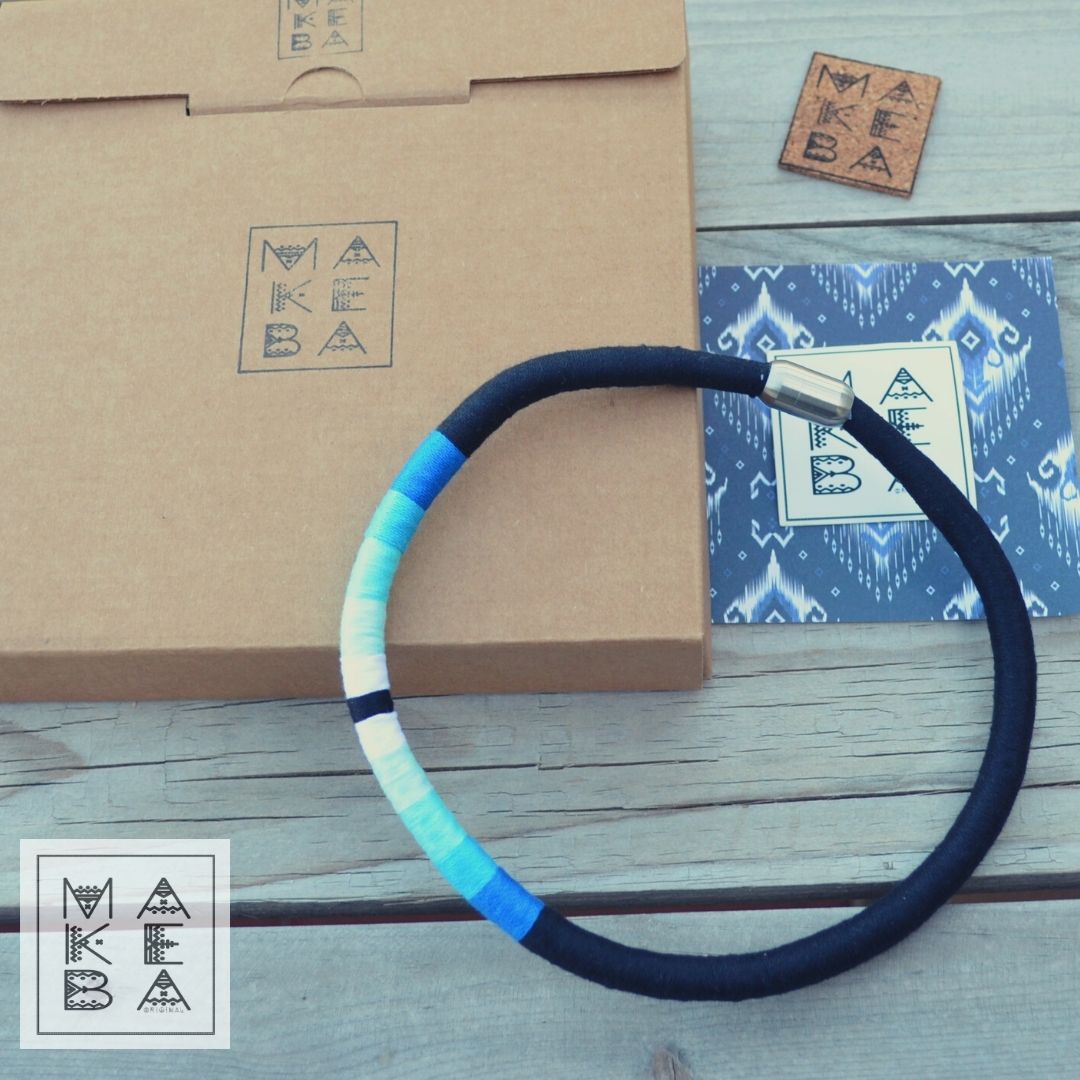 Collana semi-rigida formata da un cordino ricoperto a mano in cotone 100%.