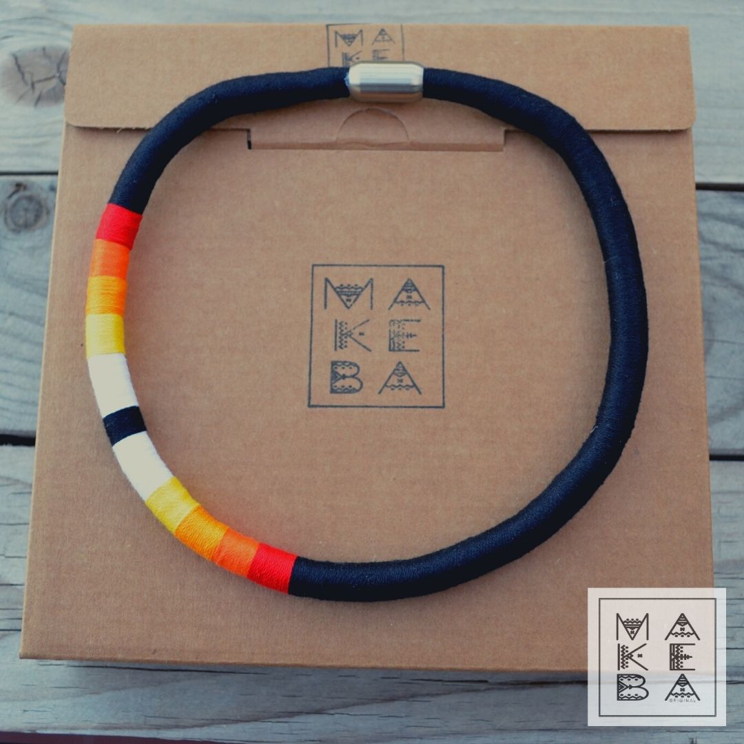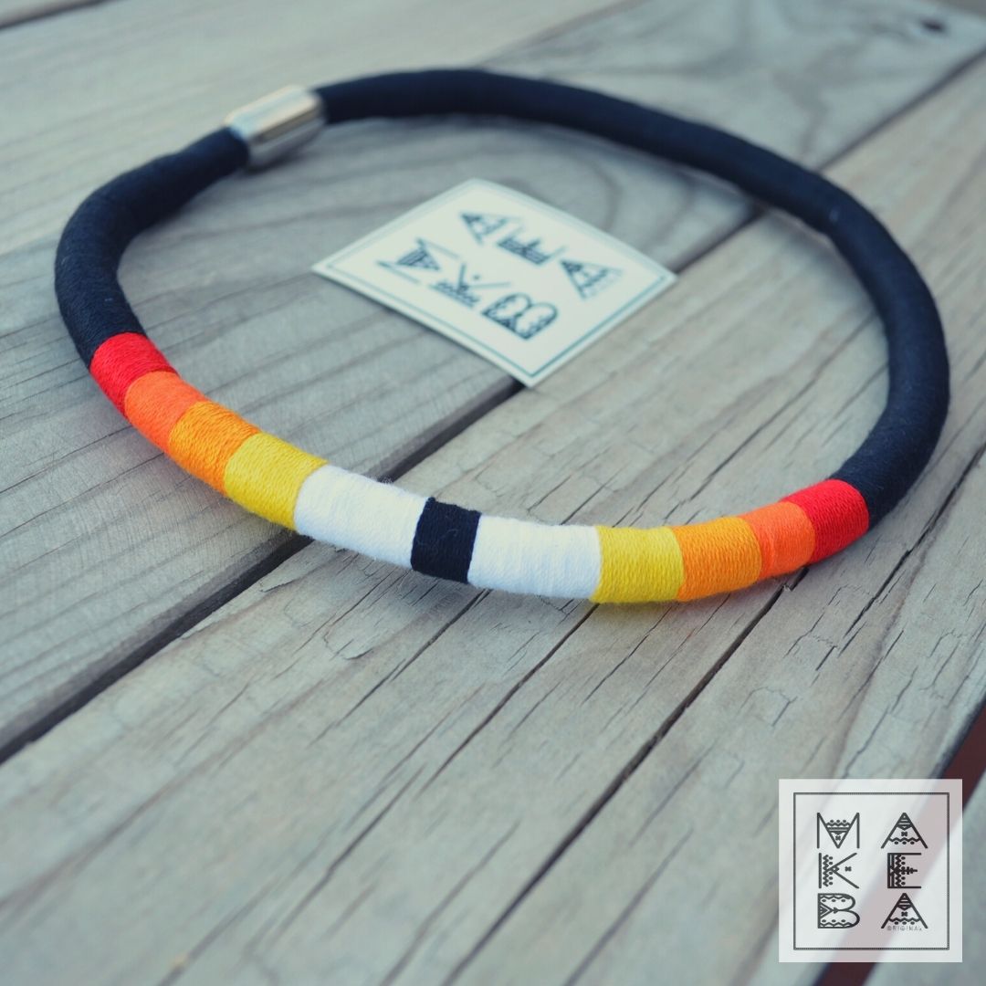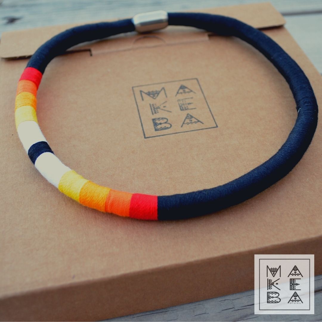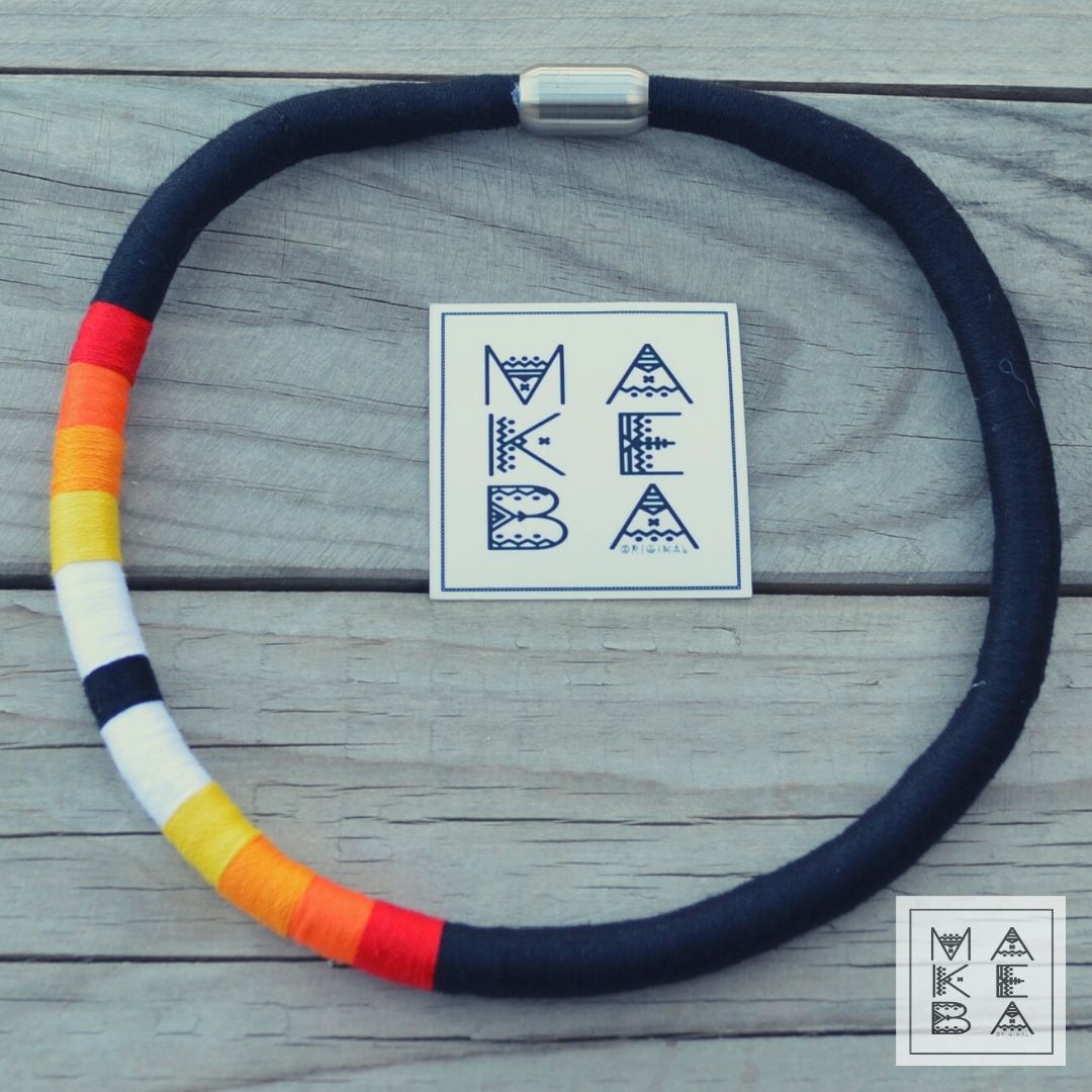 Collana semi-rigida formata da un cordino ricoperto a mano in cotone 100%.