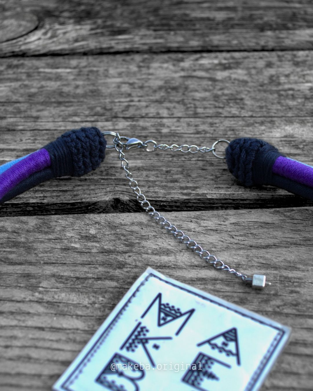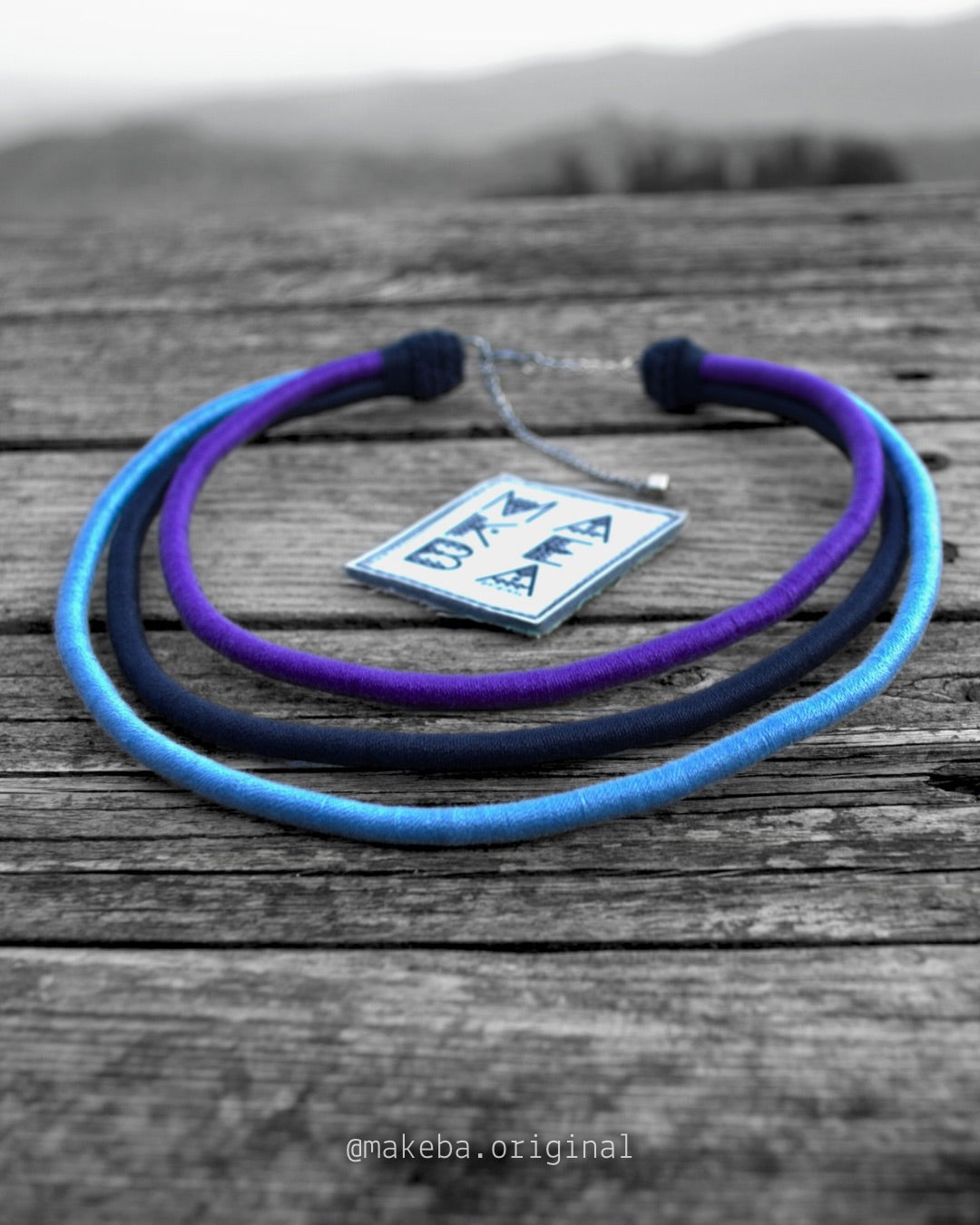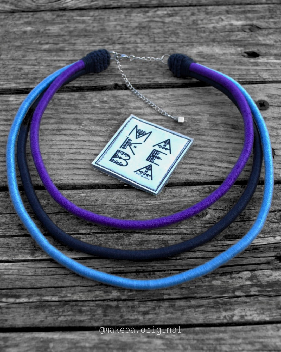 Collana artigianale in cotone 100% con anima in plastica riciclata: modellabile, leggera e irresistibilmente versatile.