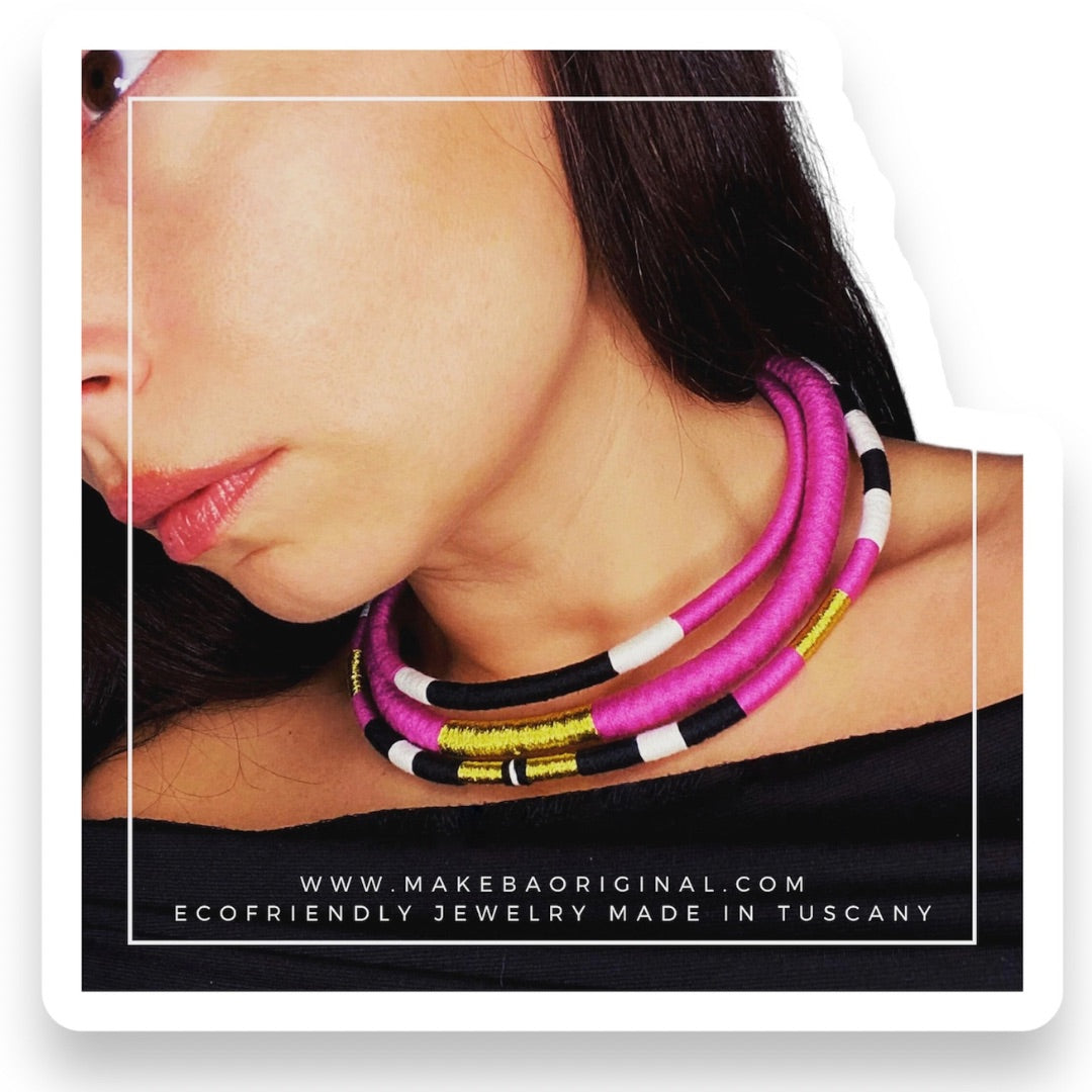 I cordini interni in plastica riciclata, non solo aiutano il pianeta, ma rendono la collana modellabile a tuo piacimento.