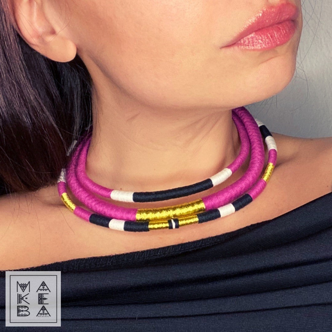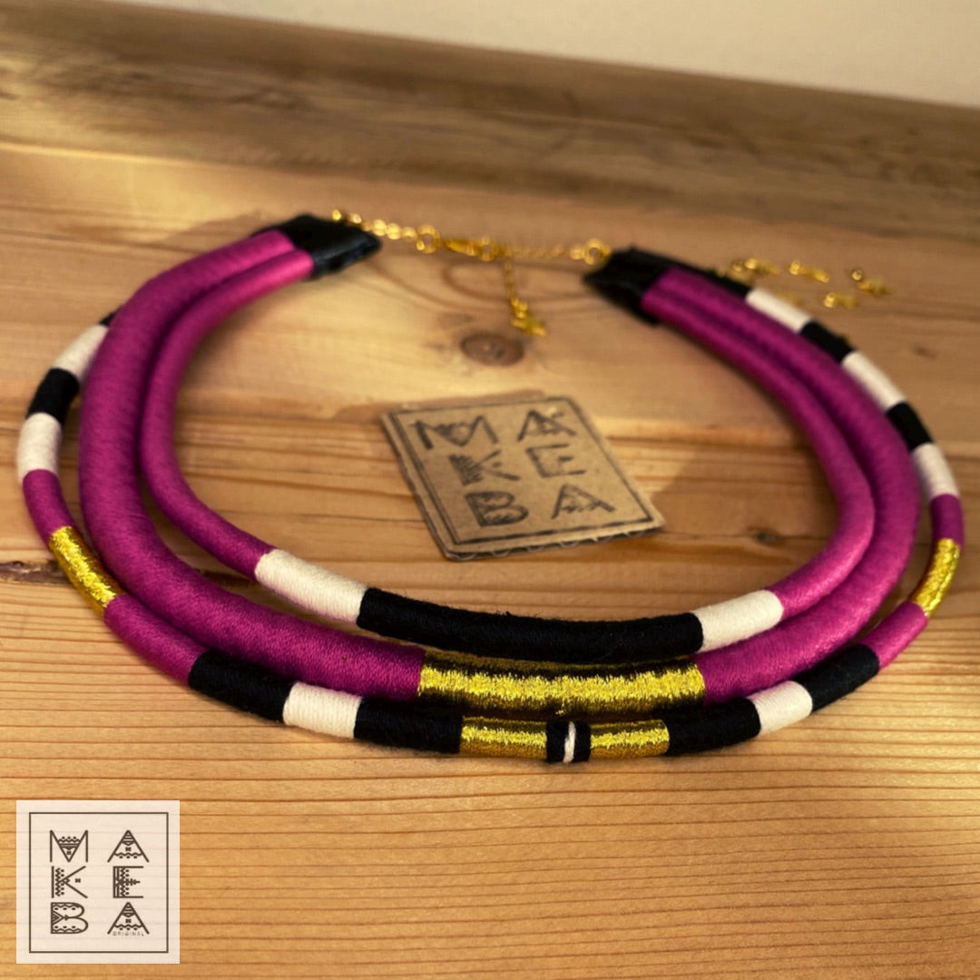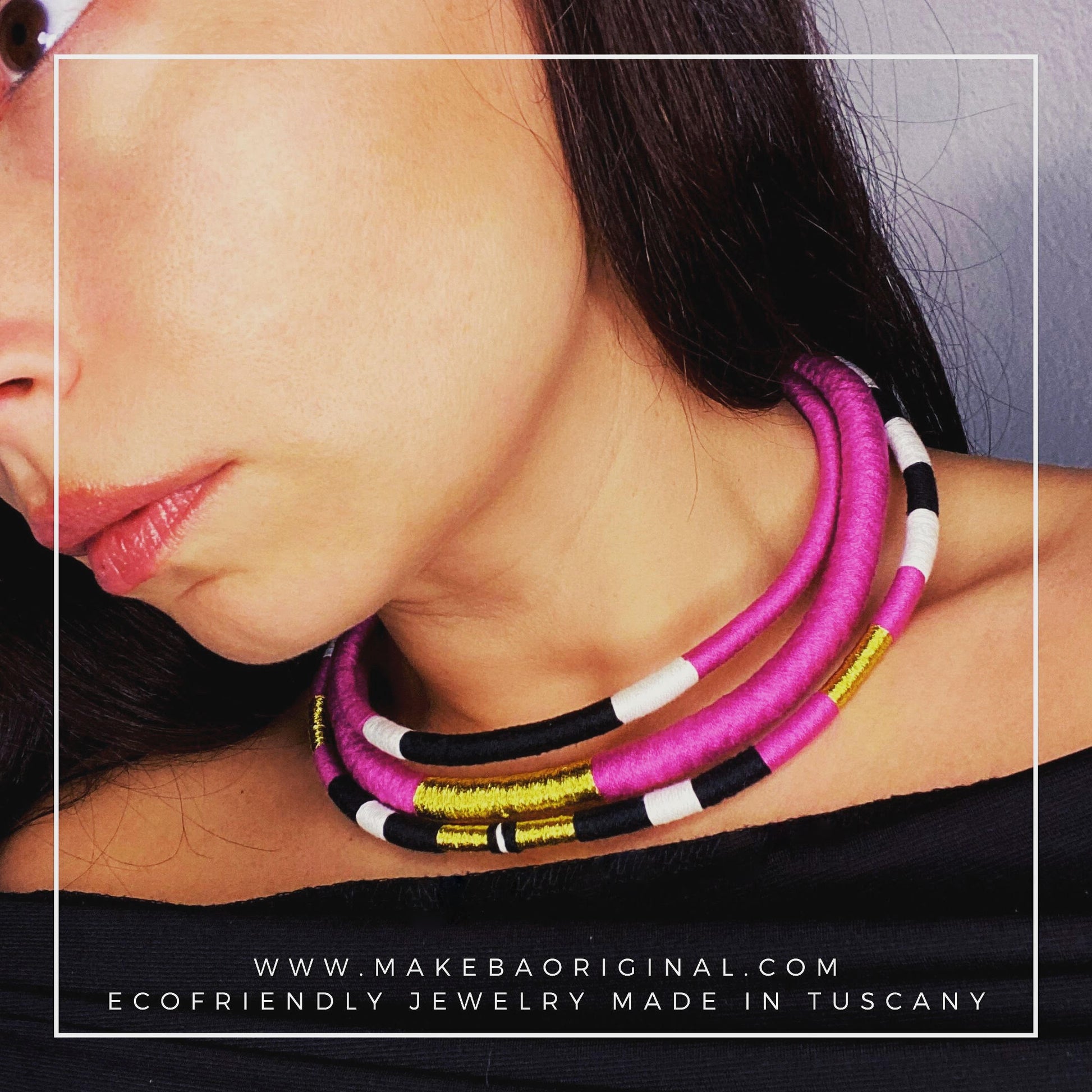 Collana semi-rigida formata da tre cordini di diverso diametro e lunghezza.