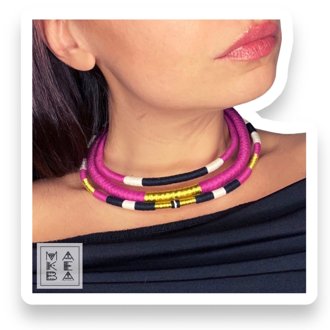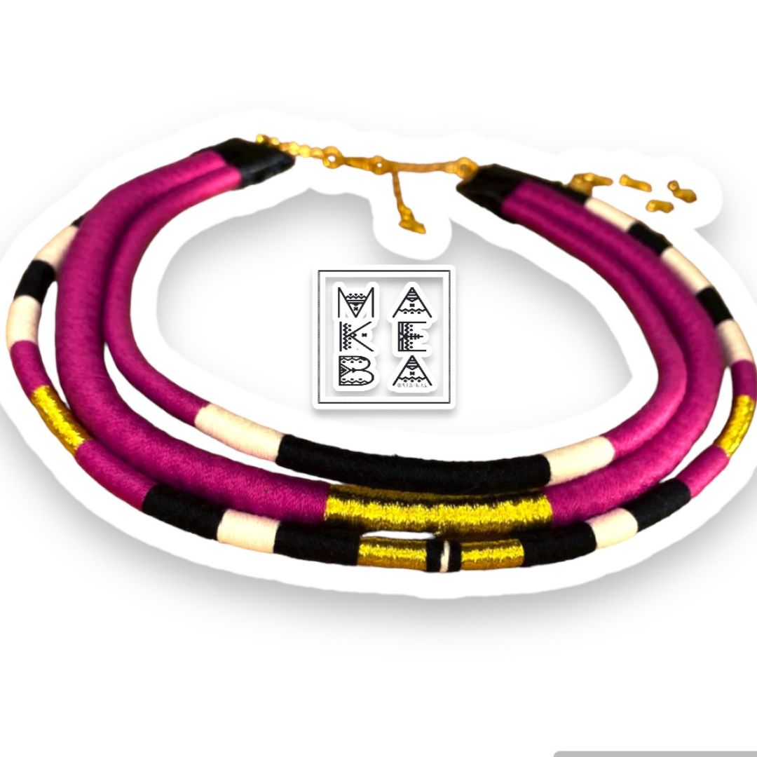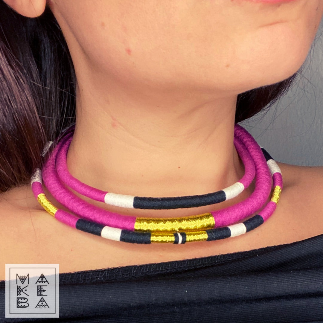 Collana semi-rigida formata da tre cordini di diverso diametro e lunghezza.