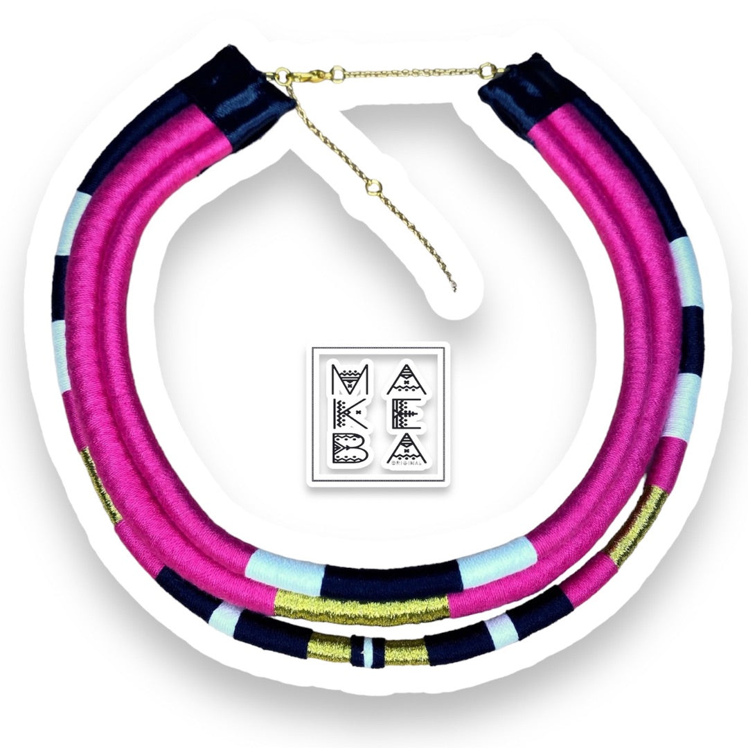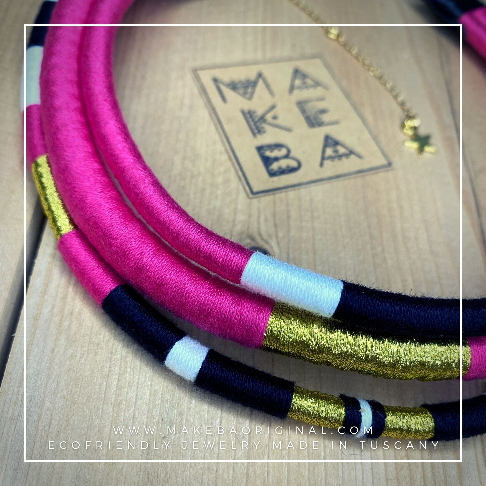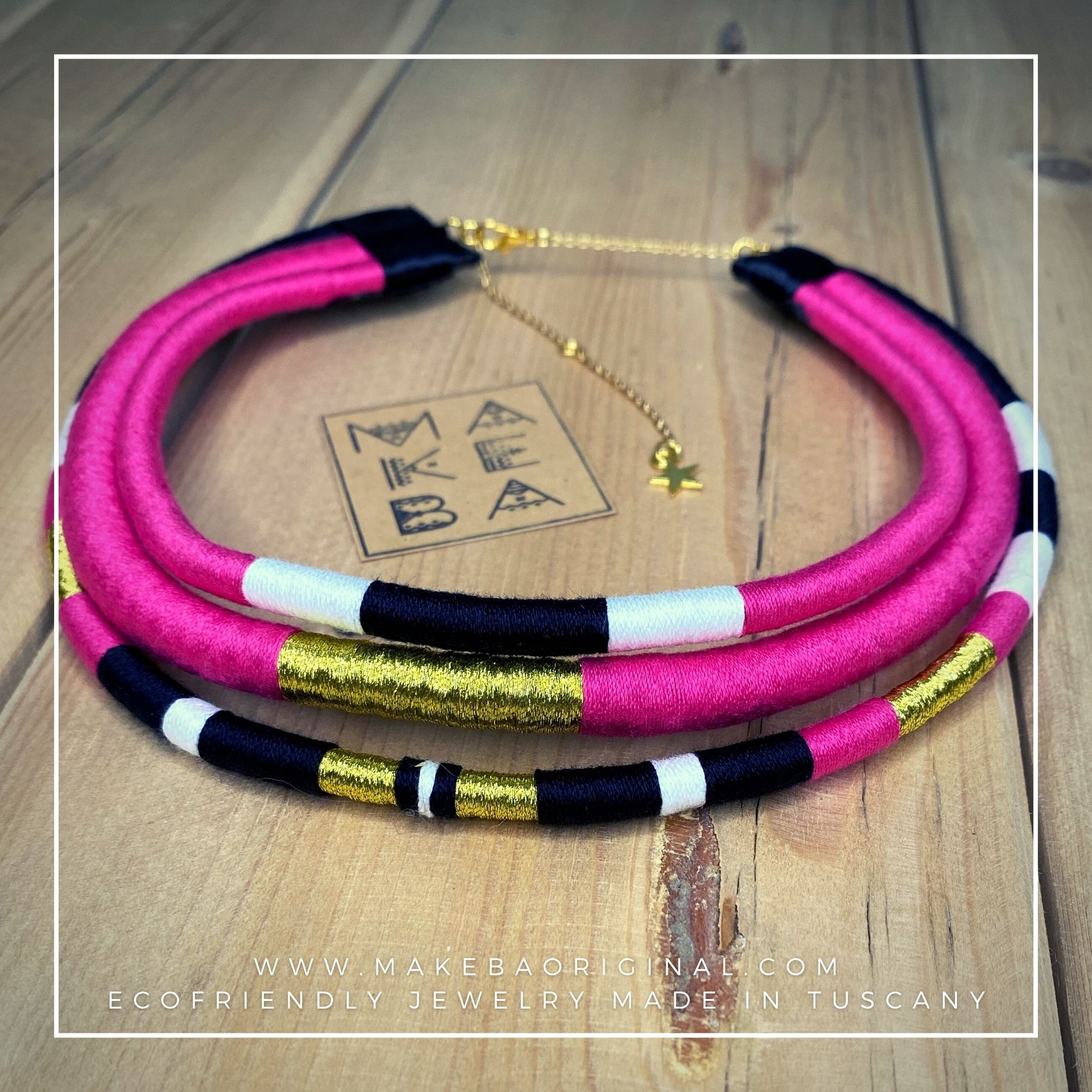 Collana semi-rigida formata da tre cordini di diverso diametro e lunghezza.