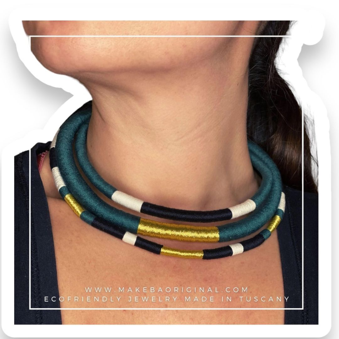 I cordini interni in plastica riciclata, non solo aiutano il pianeta, ma rendono la collana modellabile a tuo piacimento.