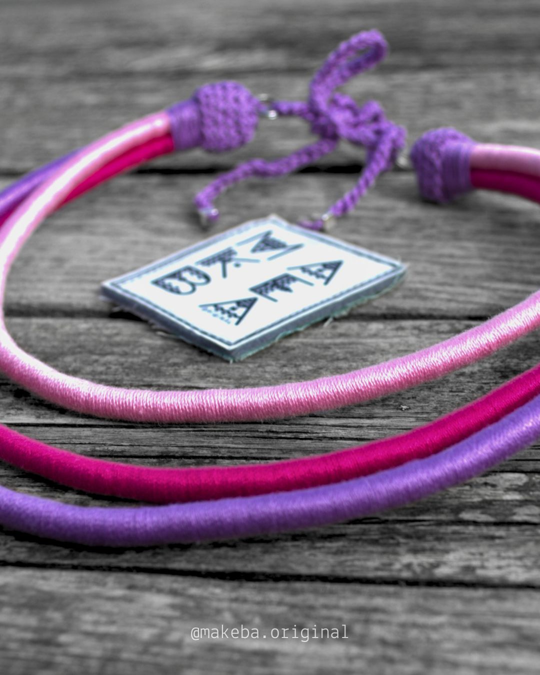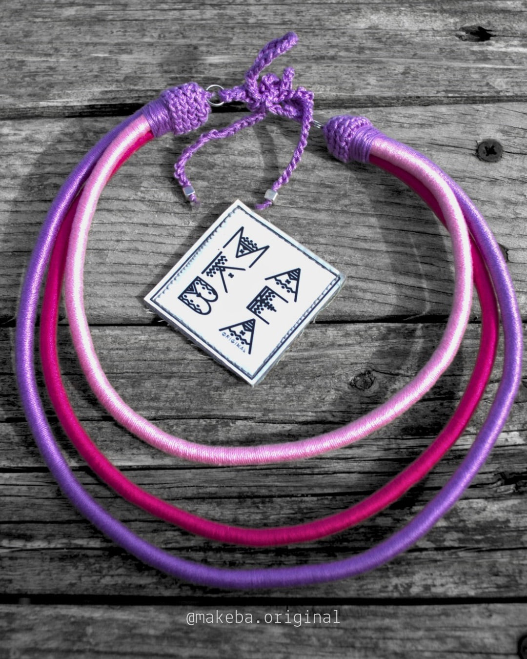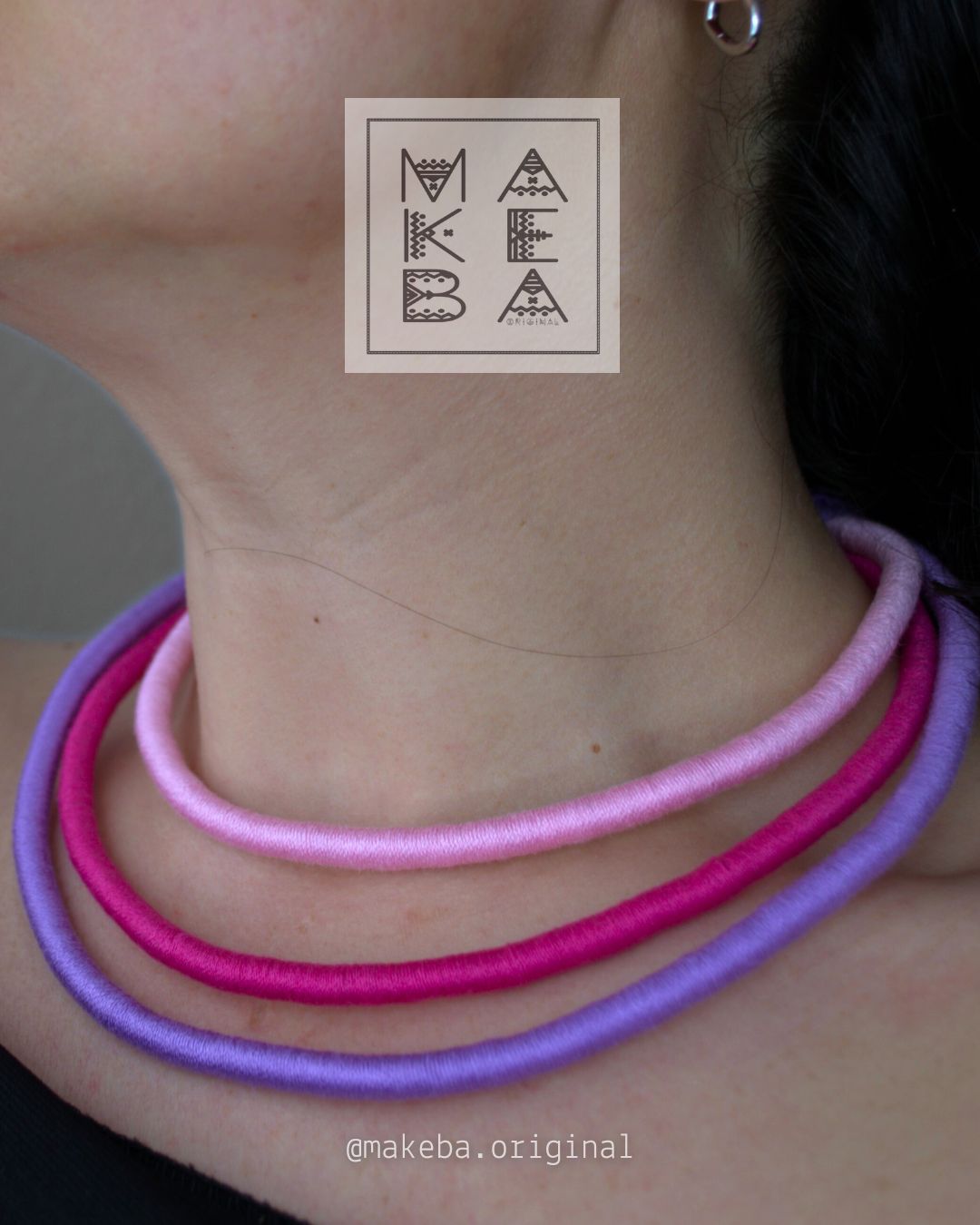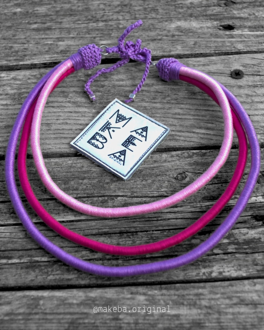 Collana artigianale in cotone 100% con anima in plastica riciclata: modellabile, leggera e irresistibilmente versatile.