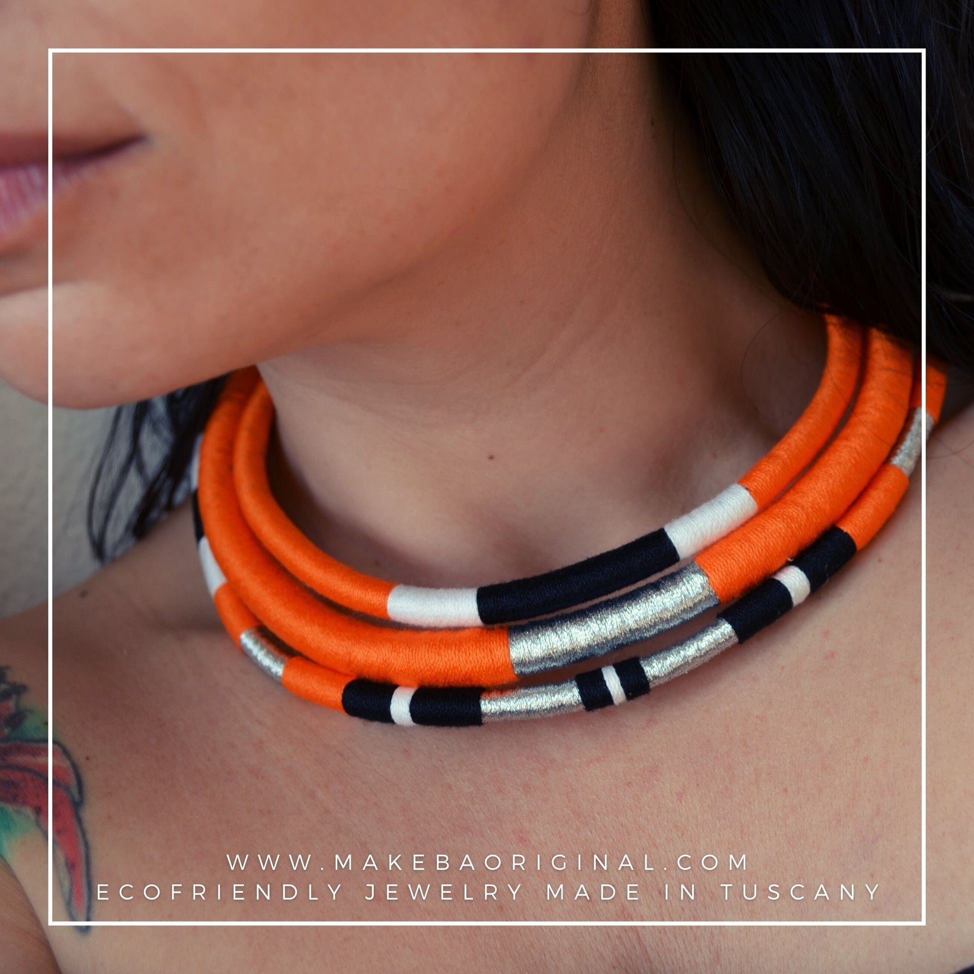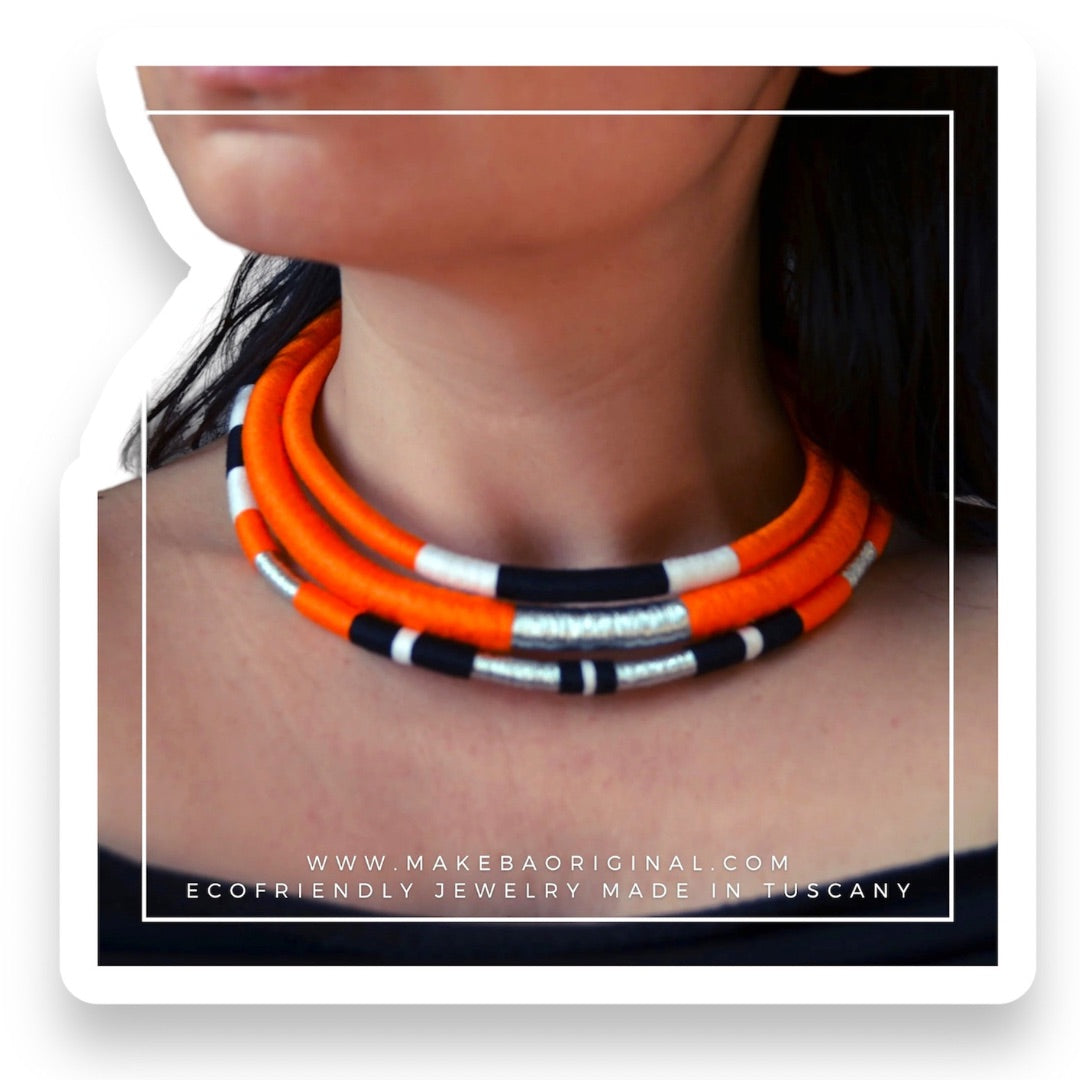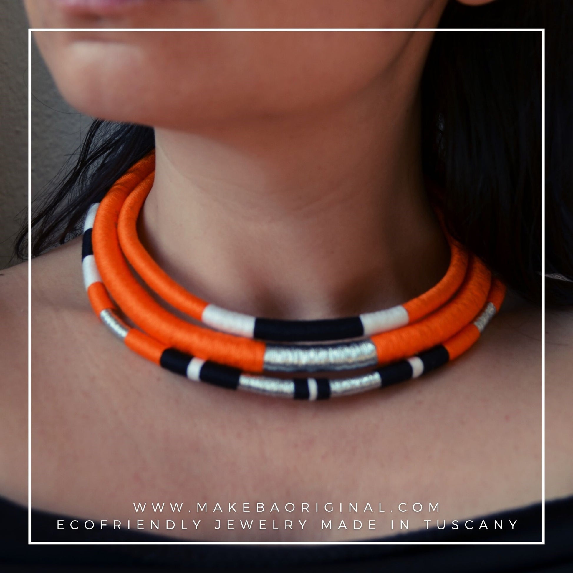 Collana semi-rigida formata da tre cordini di diverso diametro e lunghezza.
