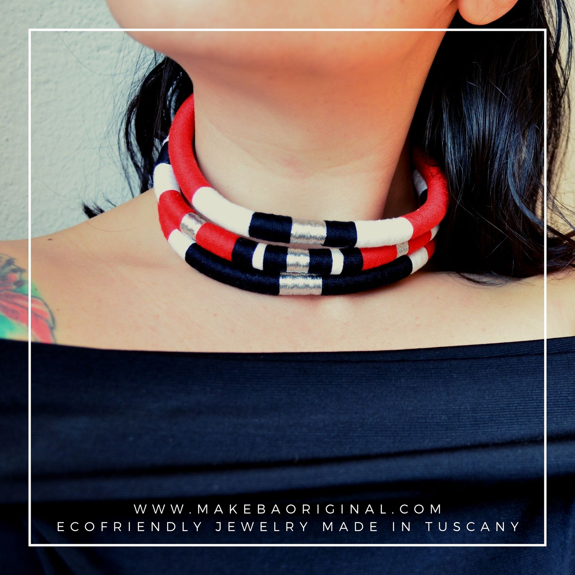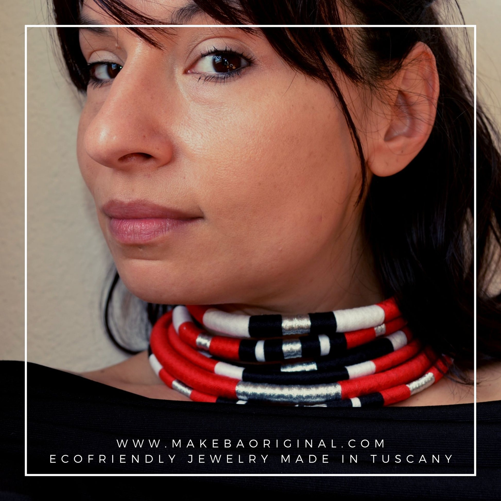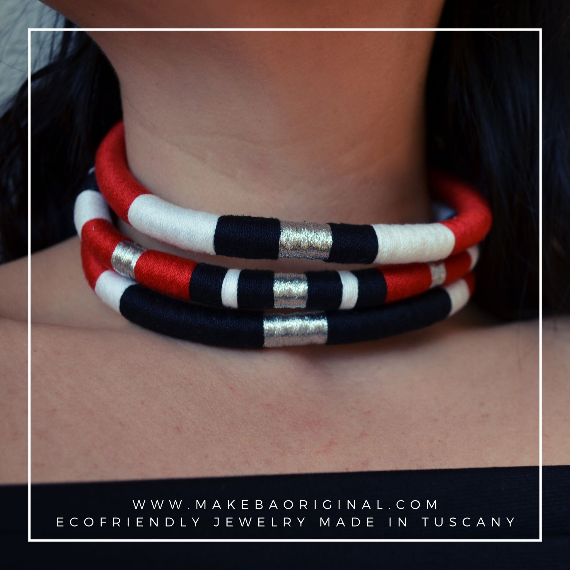 Per un look davvero WOW!, il collarino può essere indossato insieme alla collana abbinata Tri Cairo.
