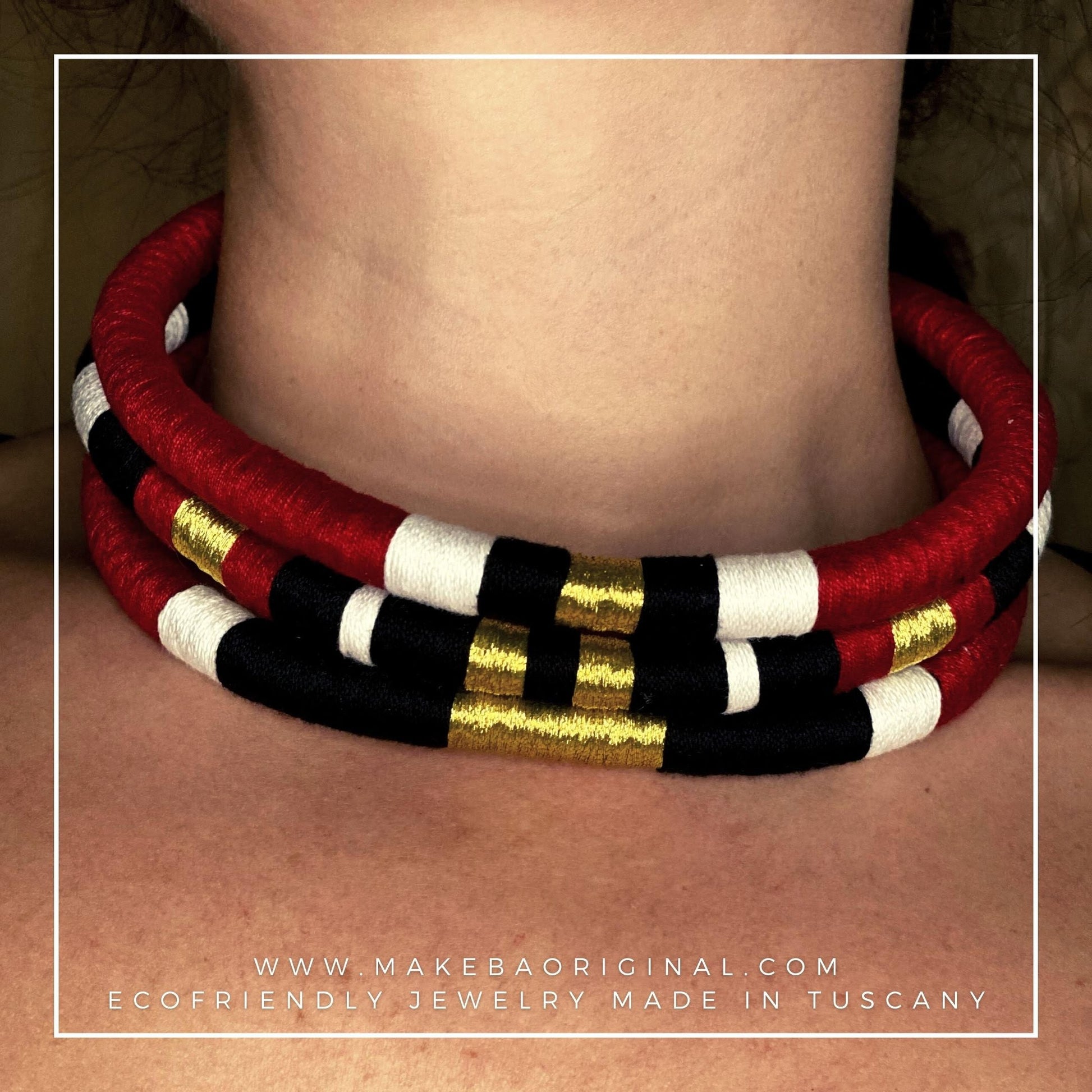 Per un look davvero WOW!, il collarino può essere indossato insieme alla collana abbinata Tri Cairo.
