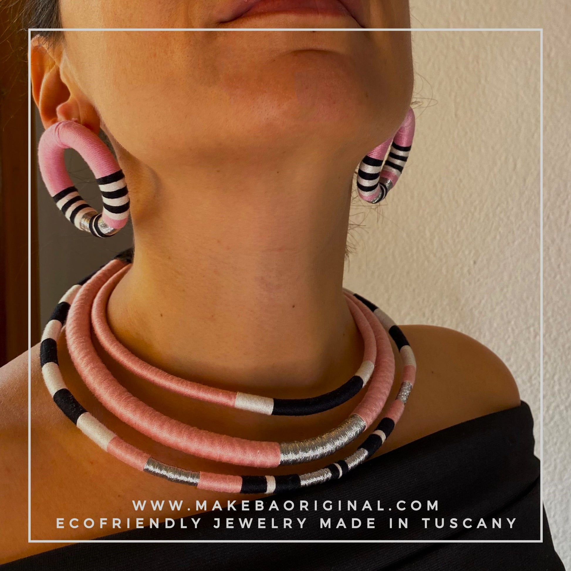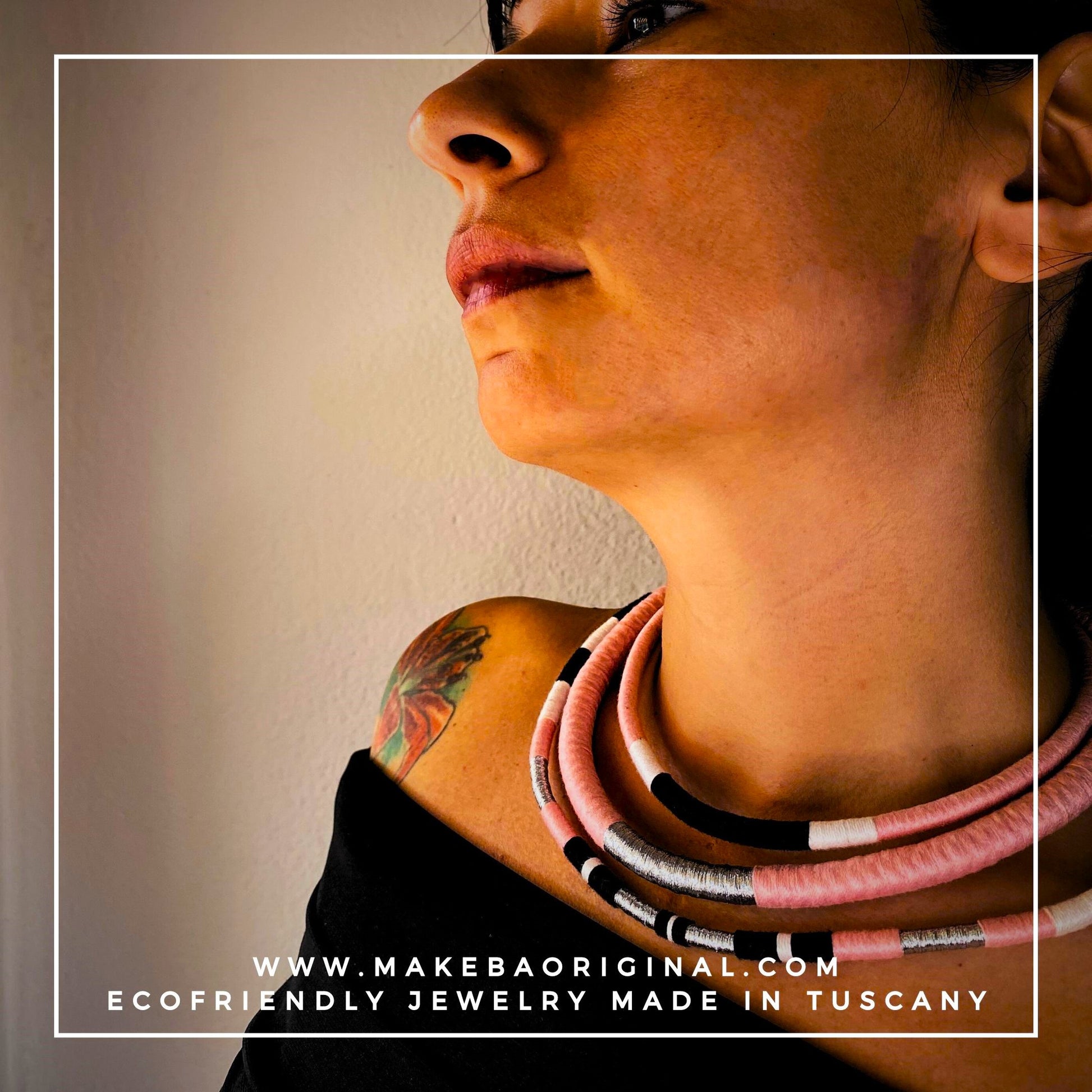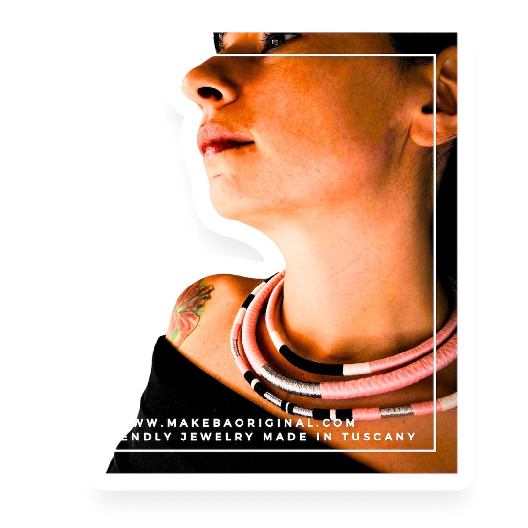 I cordini interni in plastica riciclata, non solo aiutano il pianeta, ma rendono la collana modellabile a tuo piacimento.