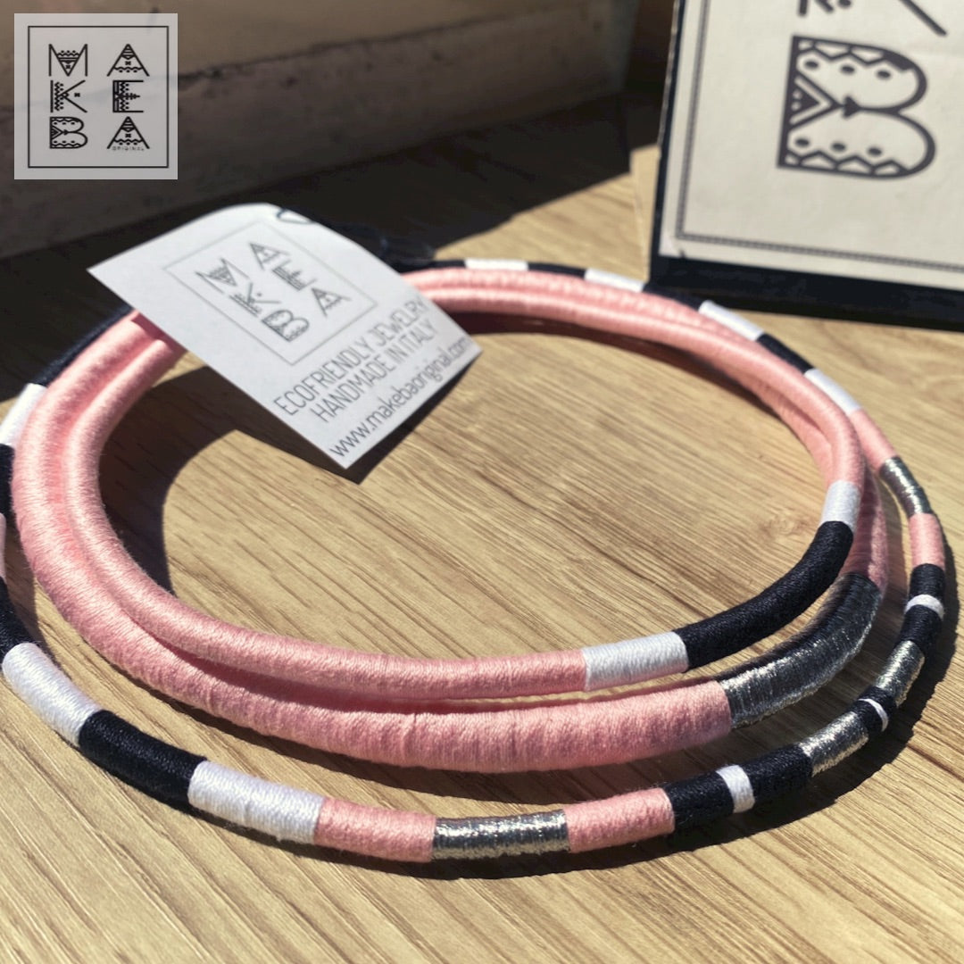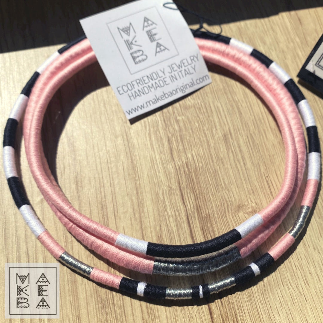 Collana semi-rigida formata da tre cordini di diverso diametro e lunghezza.