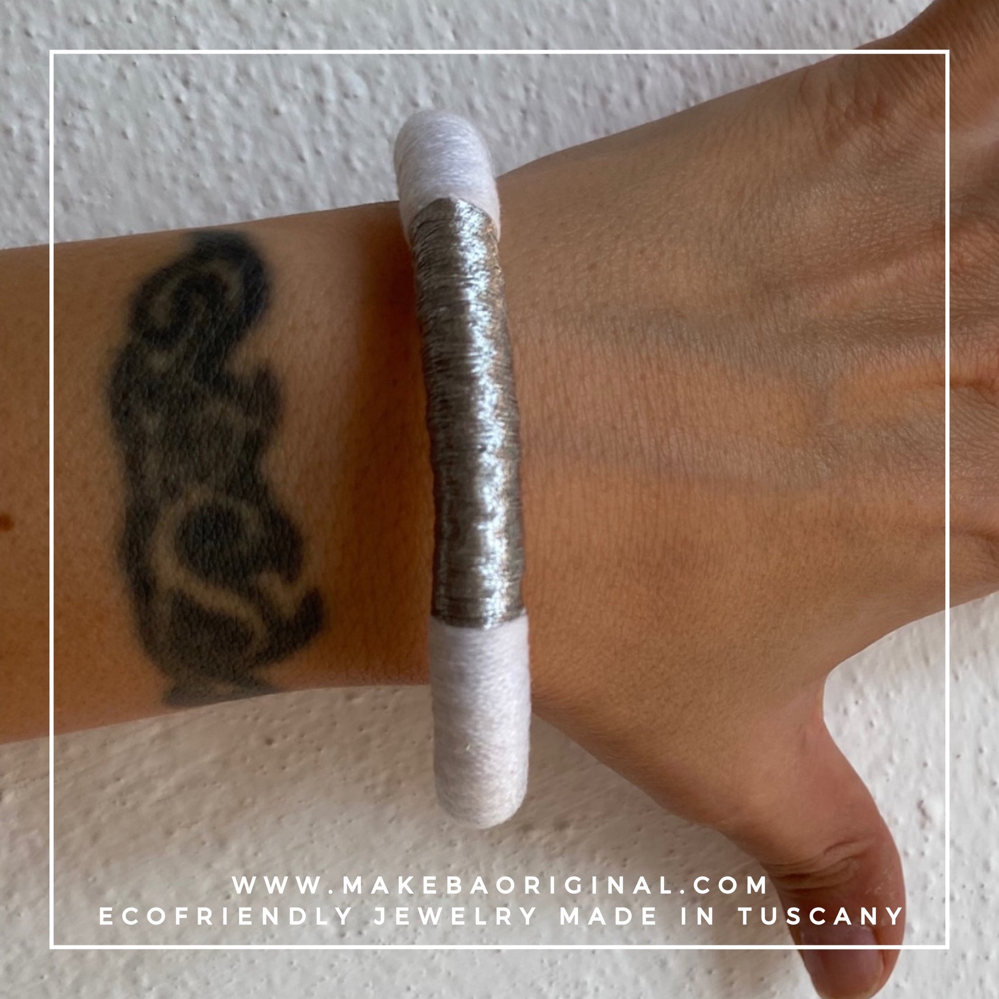 Questi bracciali sono semi-rigidi: il cordino interno lo rende modellabile e può prendere qualsiasi forma tu gli dia! Divertiti a giocarci, è anche un ottimo antistrss ;)