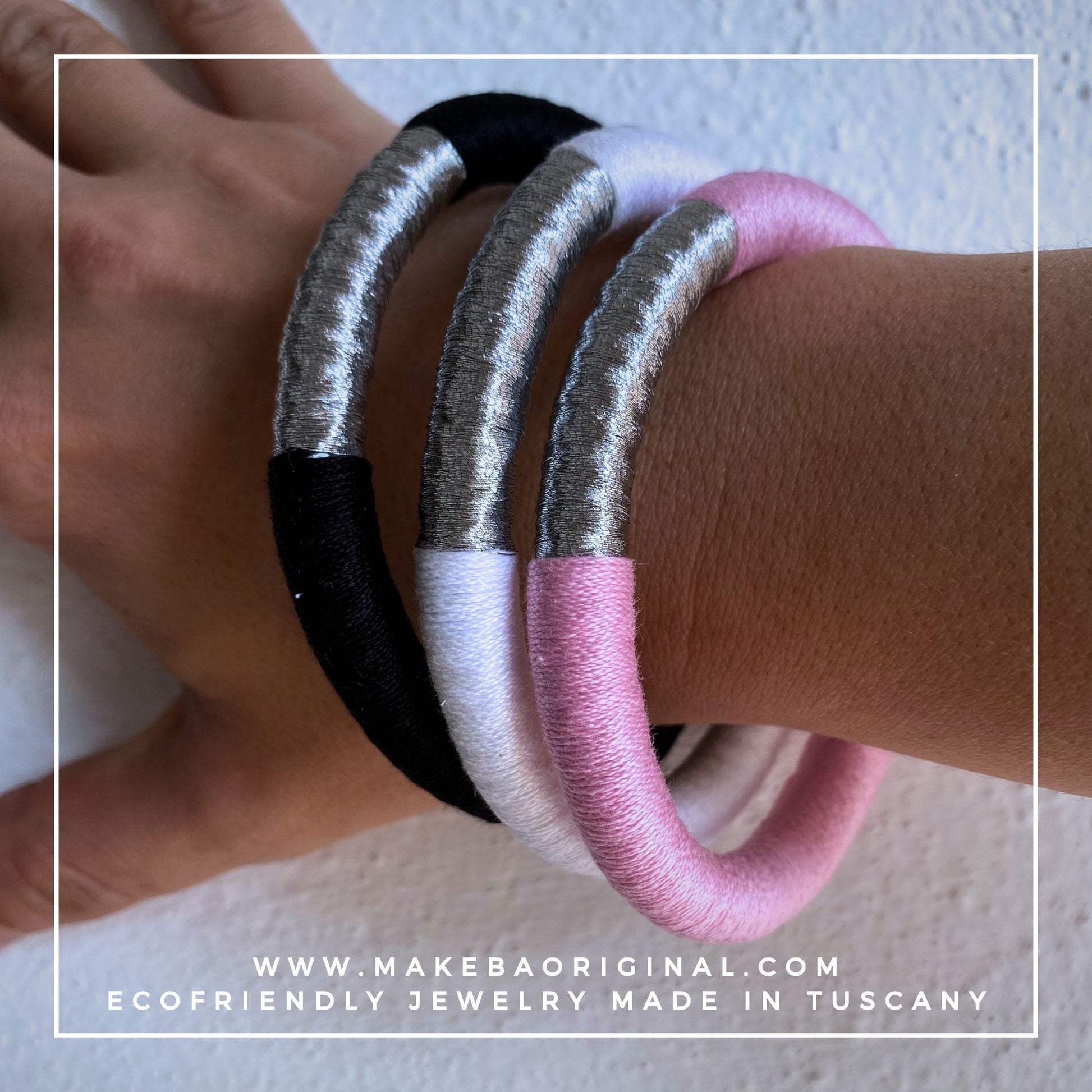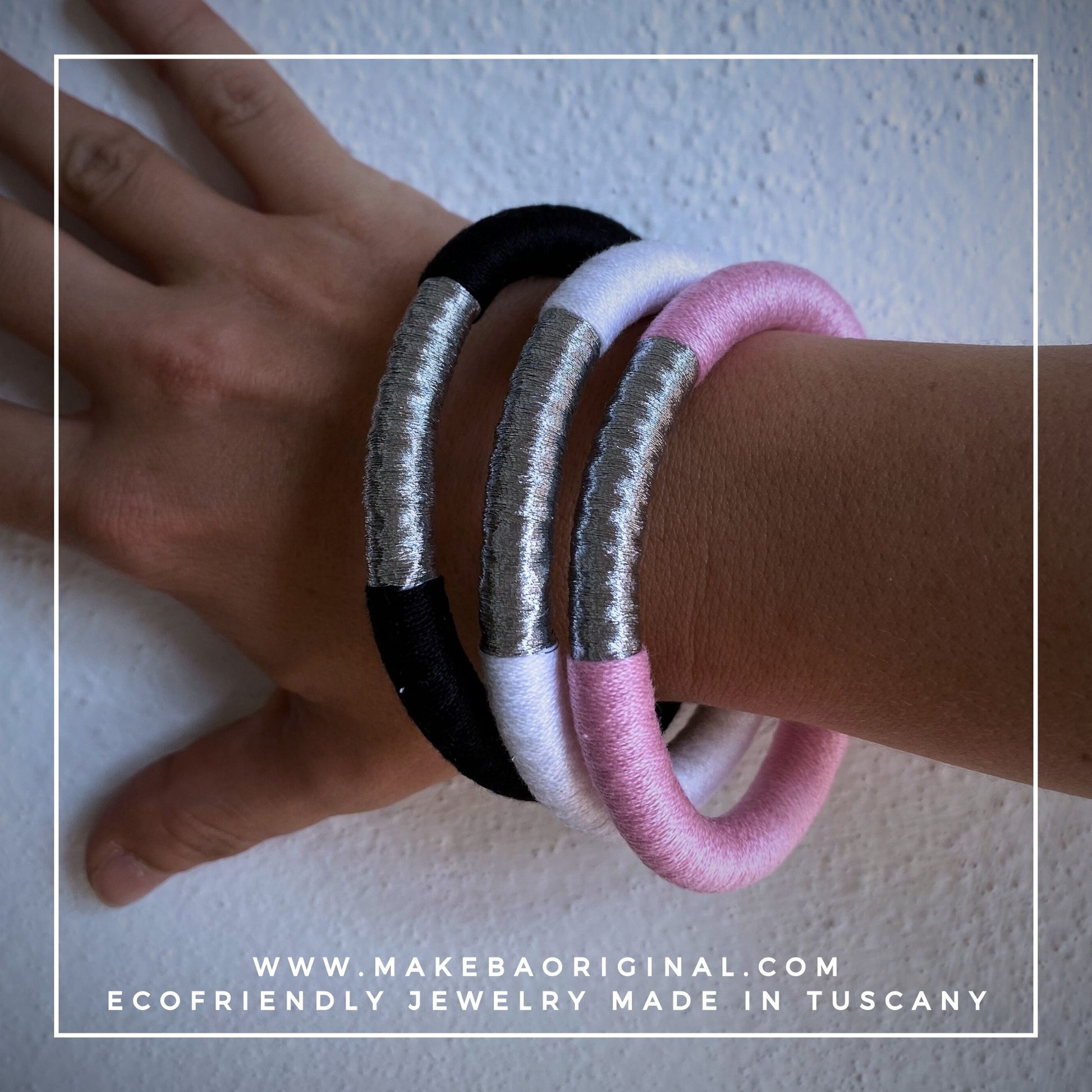 Set di 3 bracciali bangles semi rigidi in cotone.