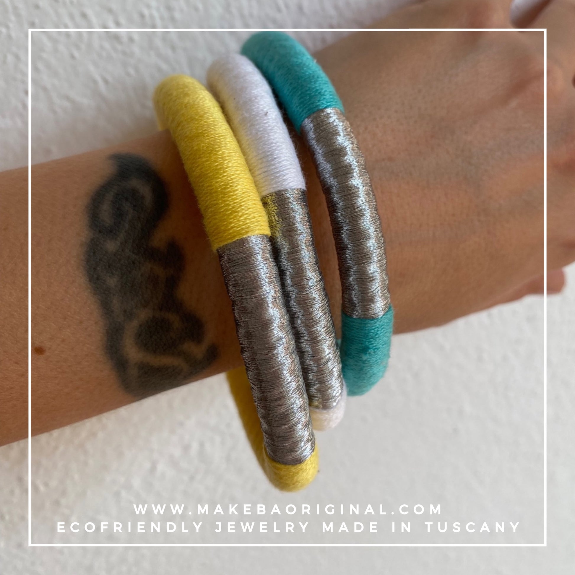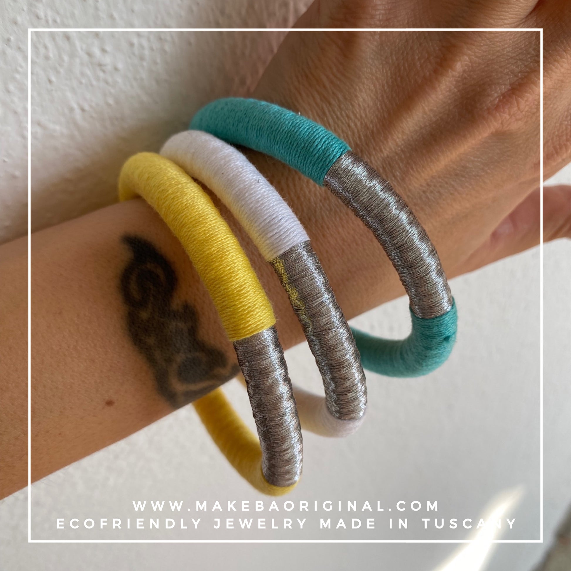 Set di 3 bracciali bangles semi rigidi in cotone.
