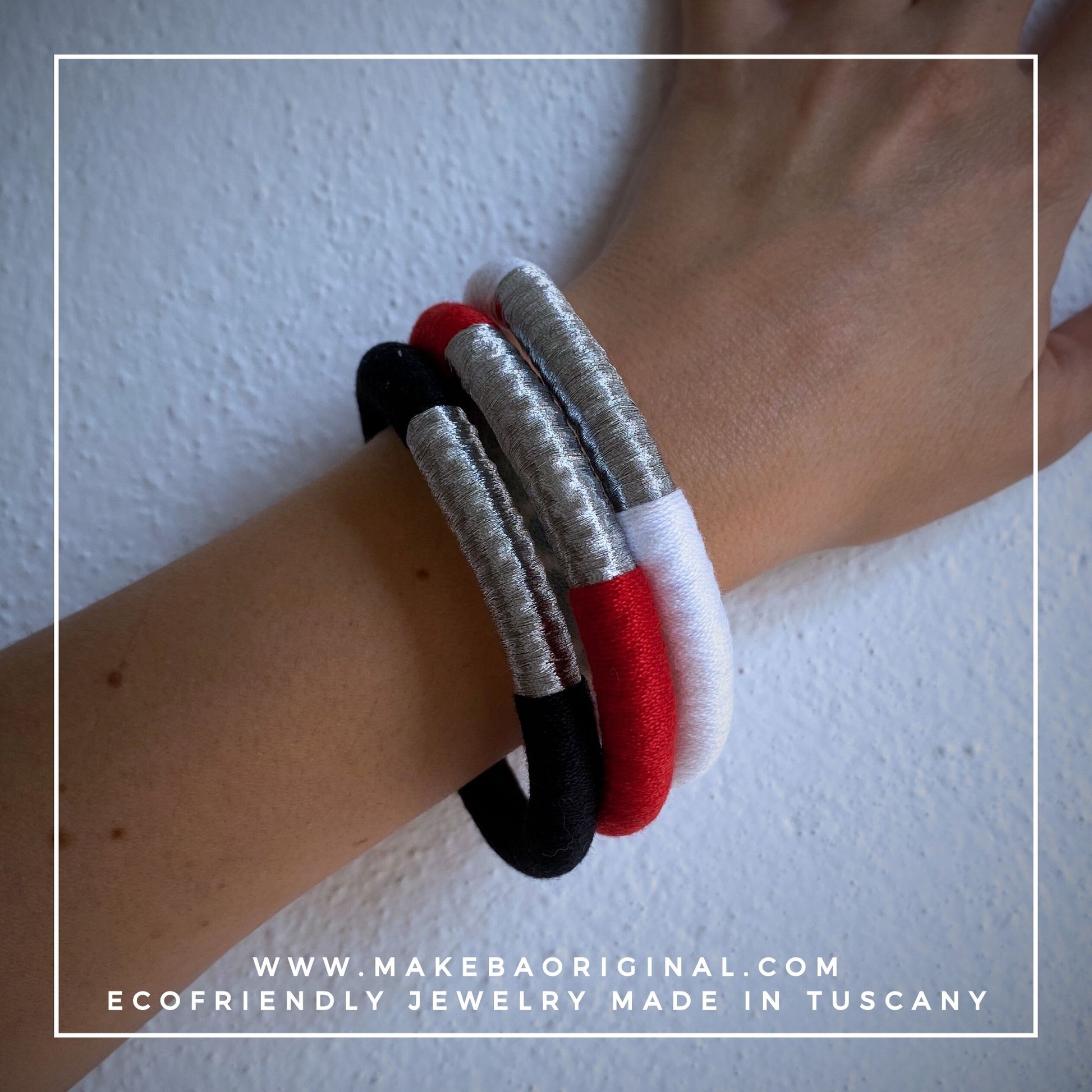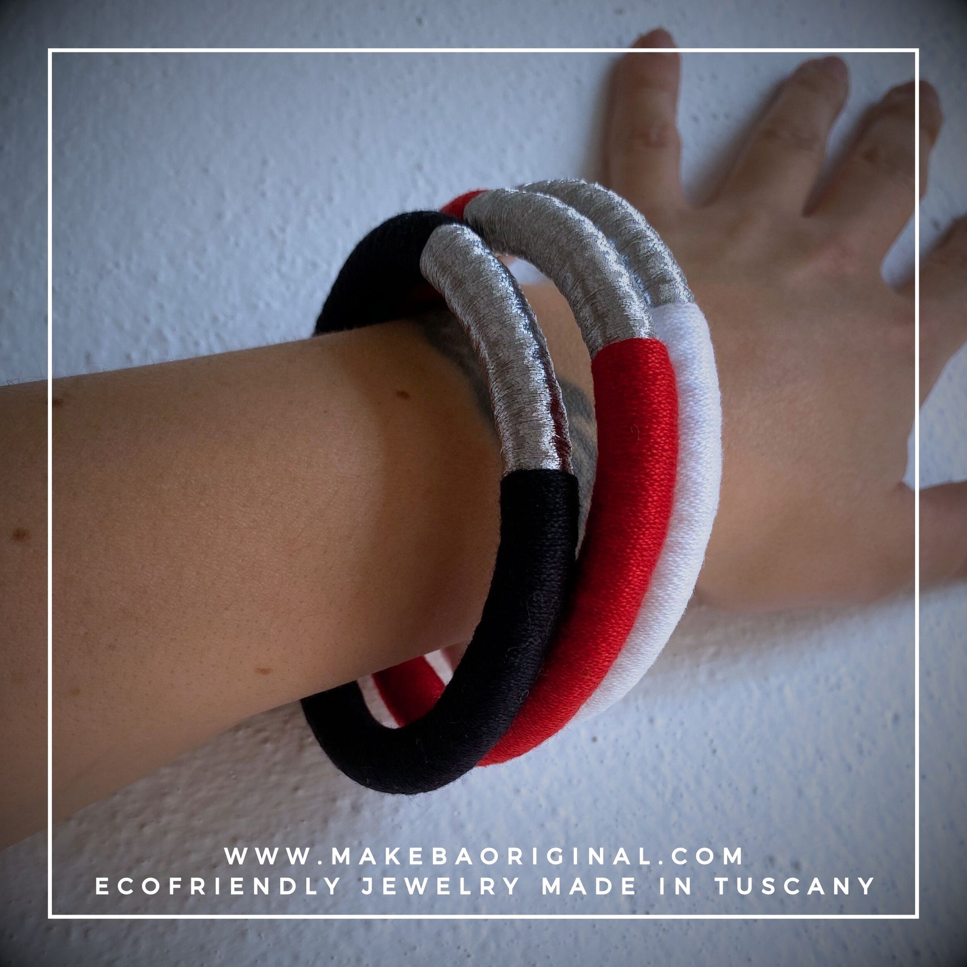 Set di 3 bracciali bangles semi rigidi in cotone.