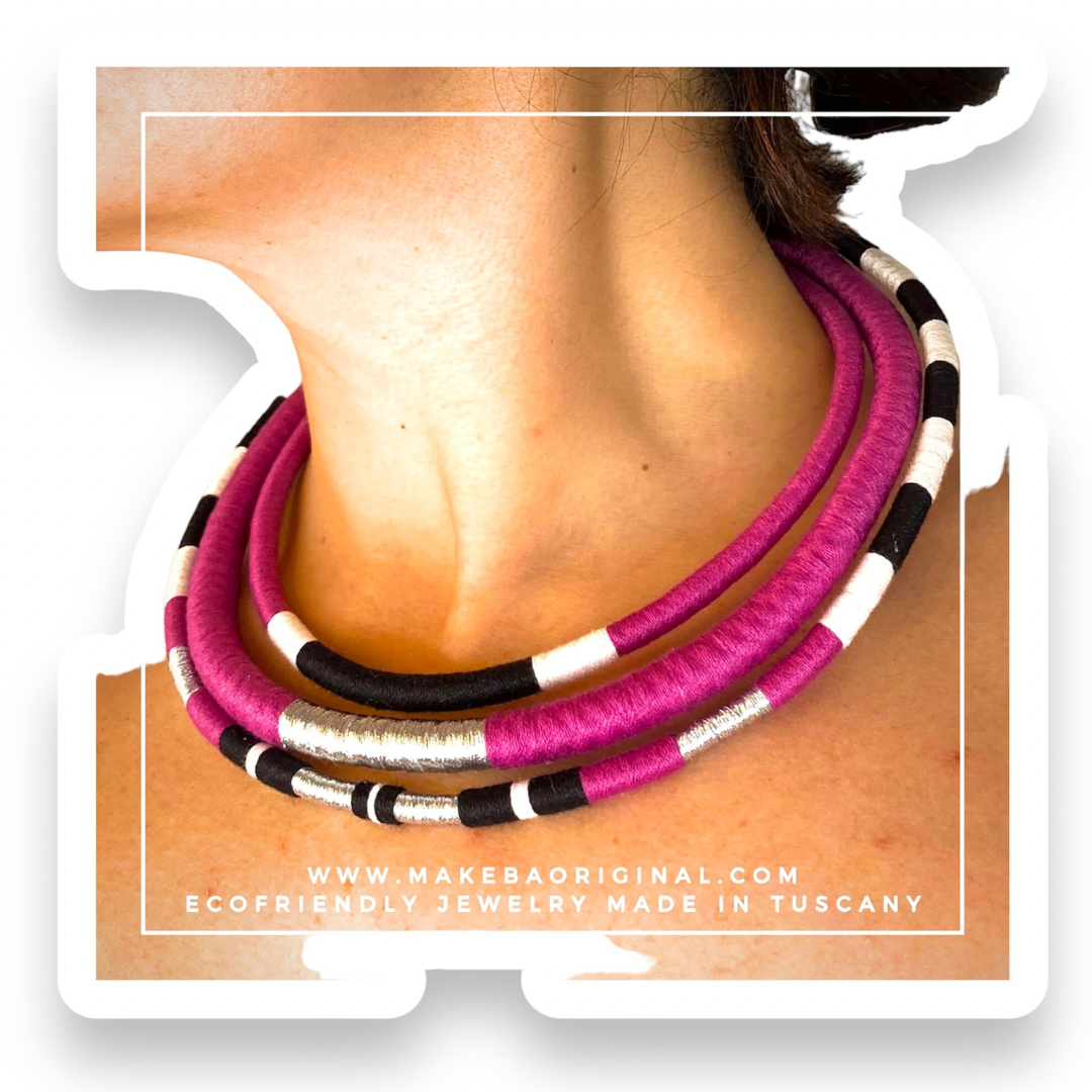 Girocollo Tri Silver - Cairo - Magenta Rosa Argento
