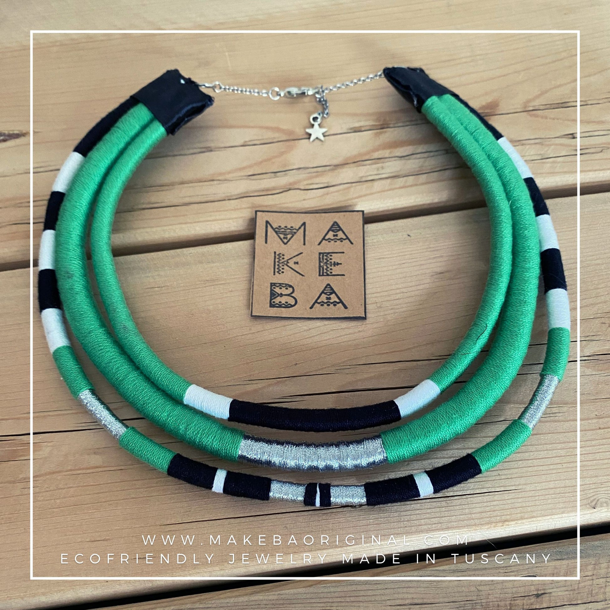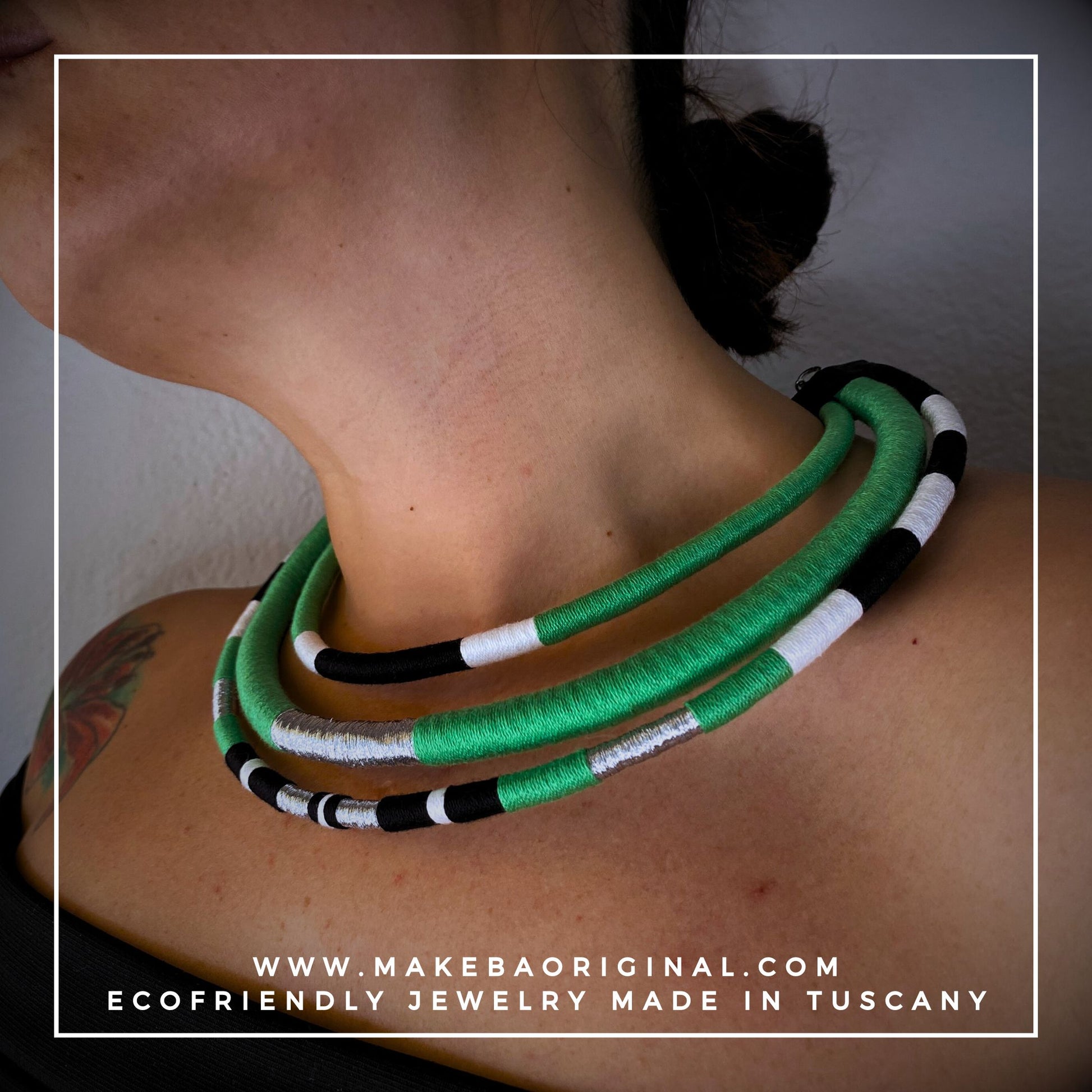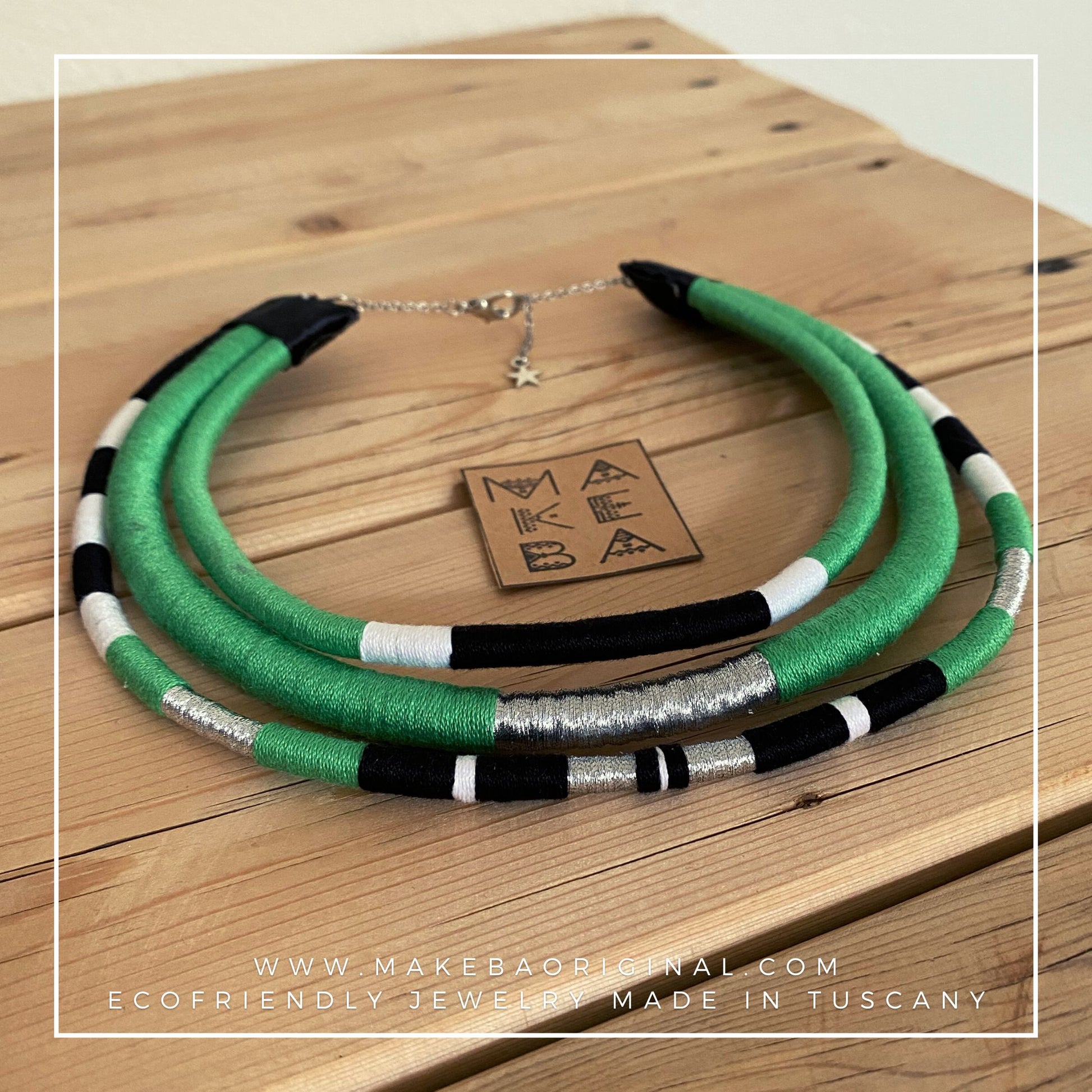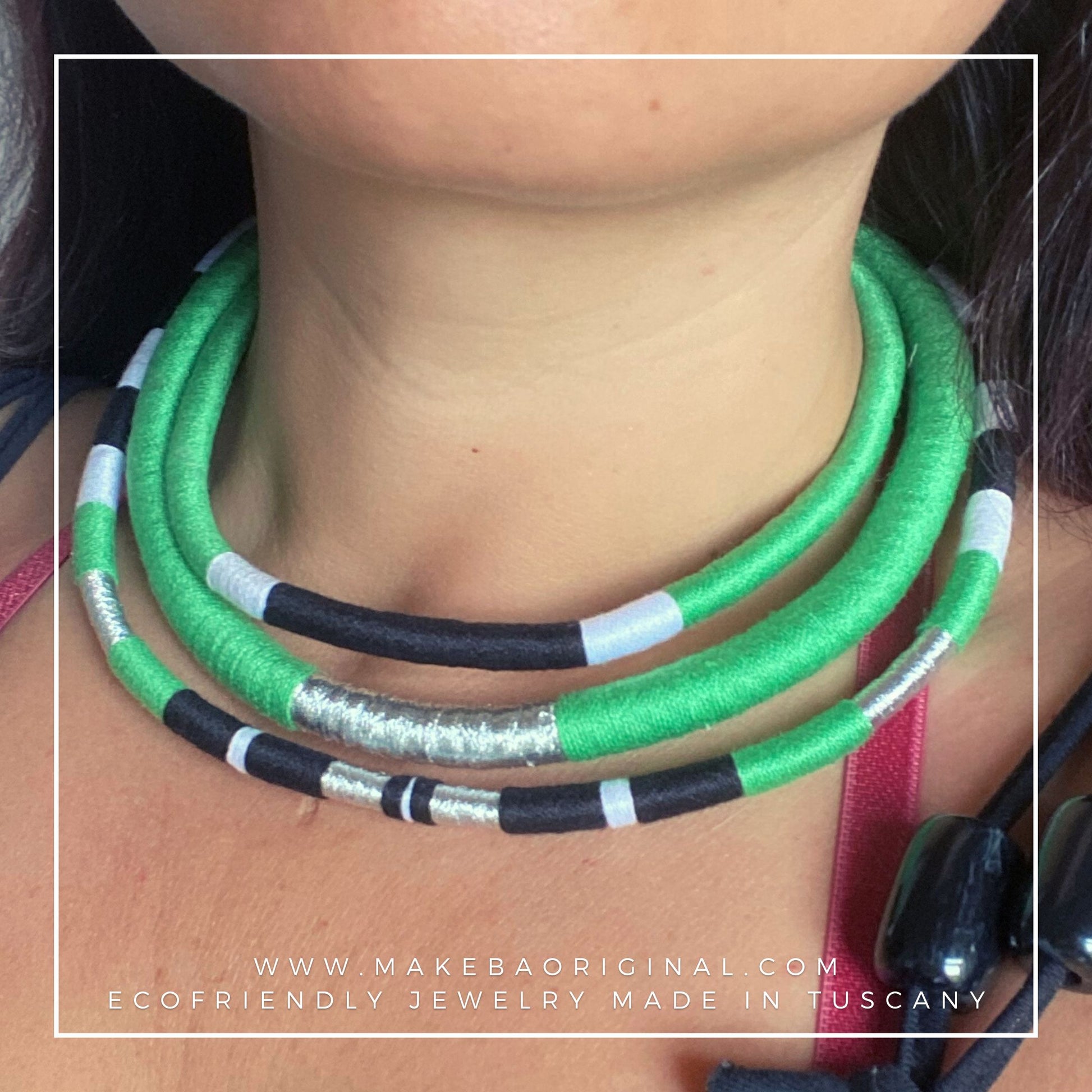 I cordini interni in plastica riciclata, non solo aiutano il pianeta, ma rendono la collana modellabile a tuo piacimento.