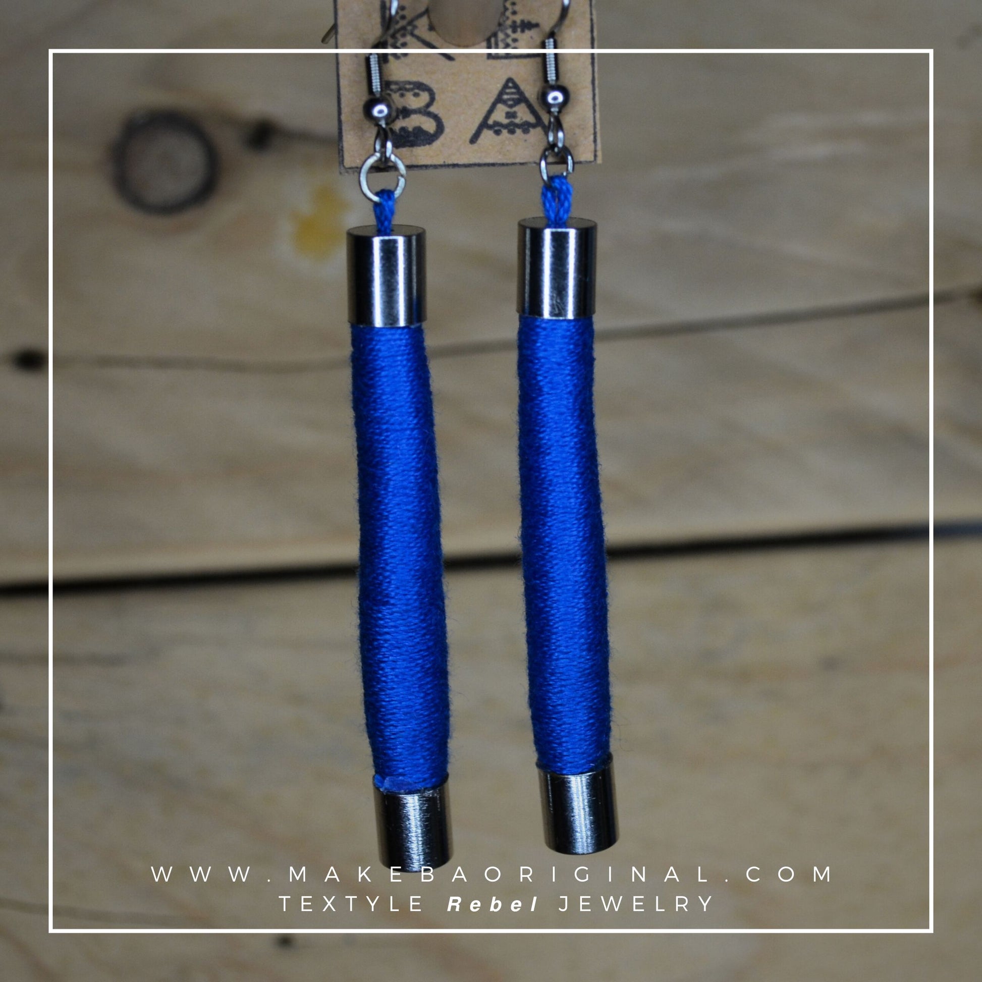 Orecchini leggerissimi a pendente, in cotone organico e acciaio anallergico.