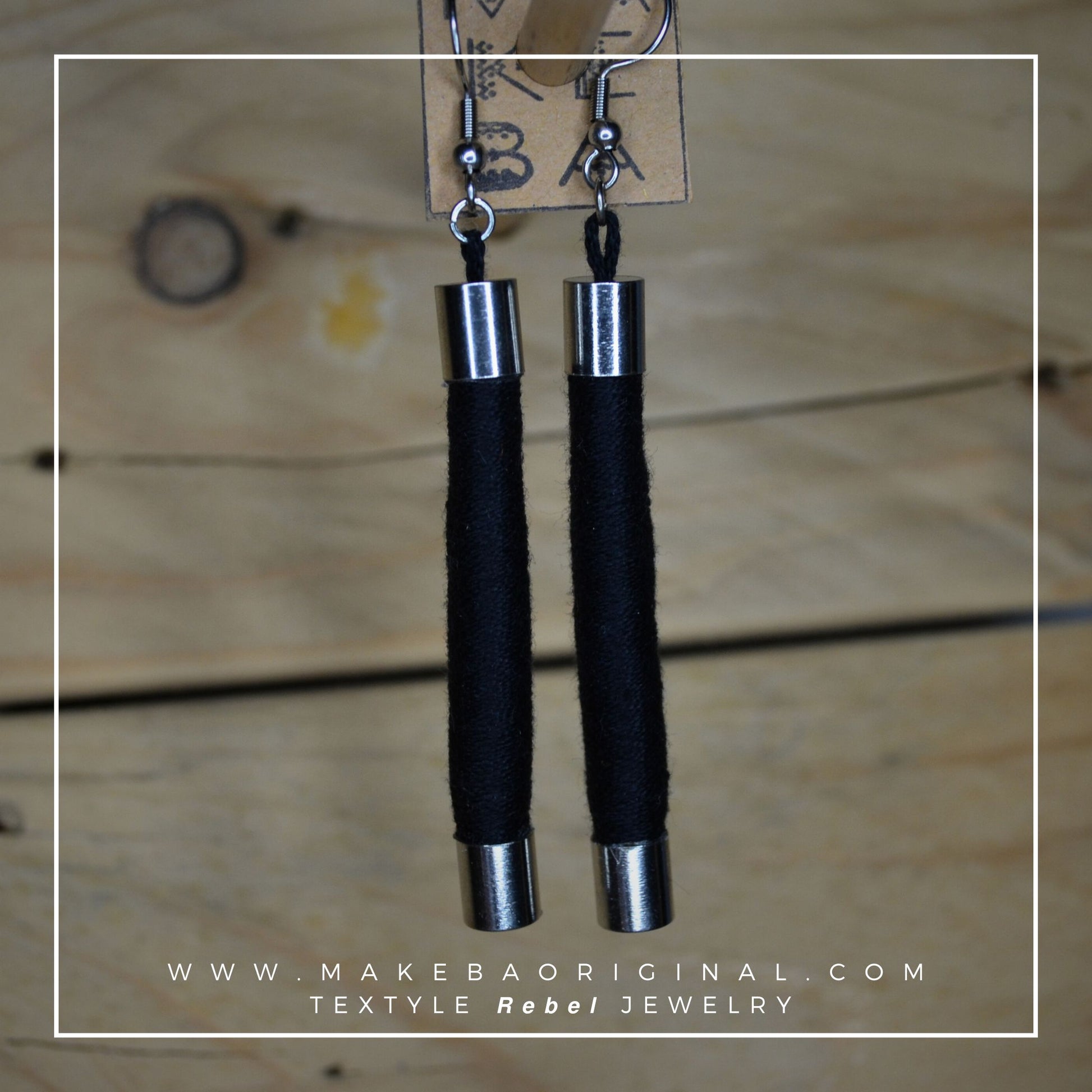 Orecchini leggerissimi a pendente, in cotone organico e acciaio anallergico.