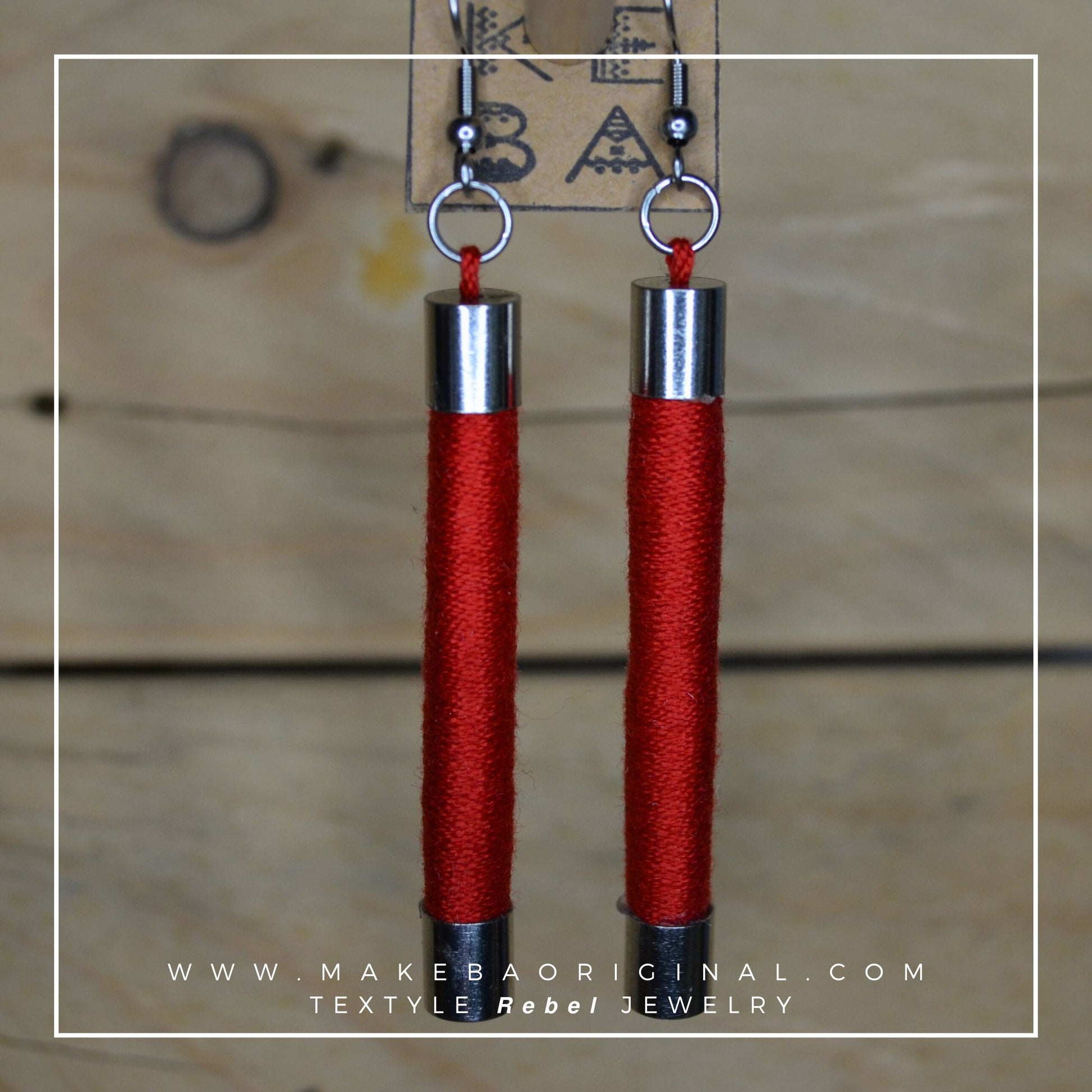 Orecchini leggerissimi a pendente, in cotone organico e acciaio anallergico.