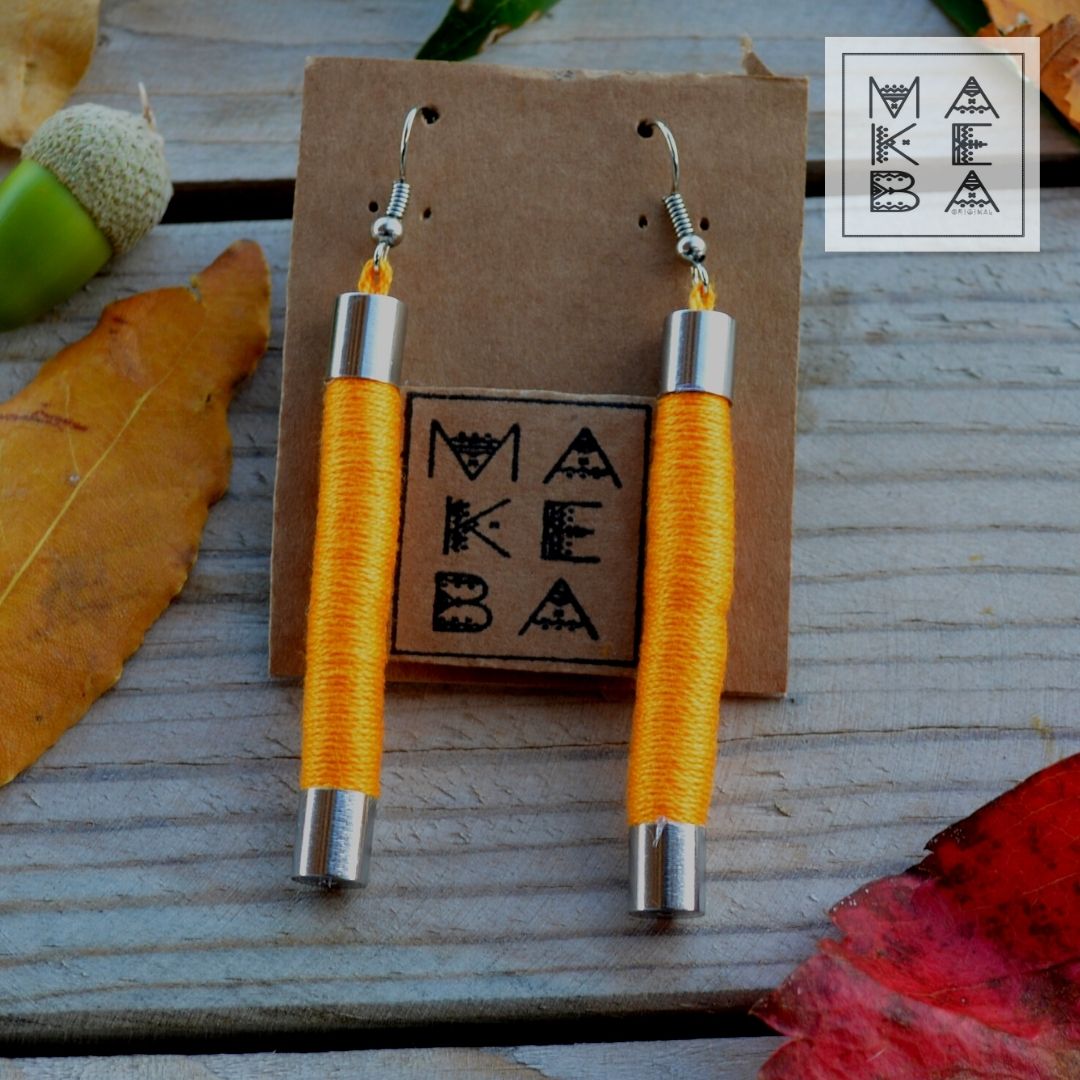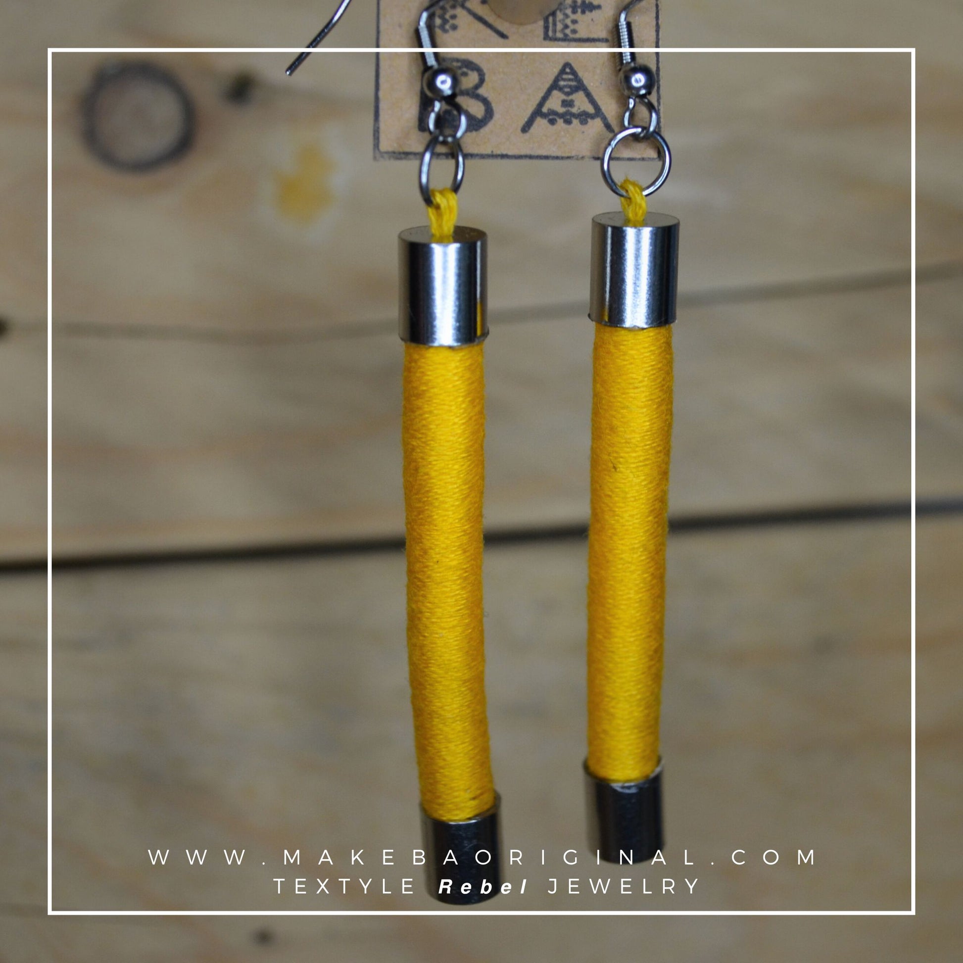 Orecchini leggerissimi a pendente, in cotone organico e acciaio anallergico.