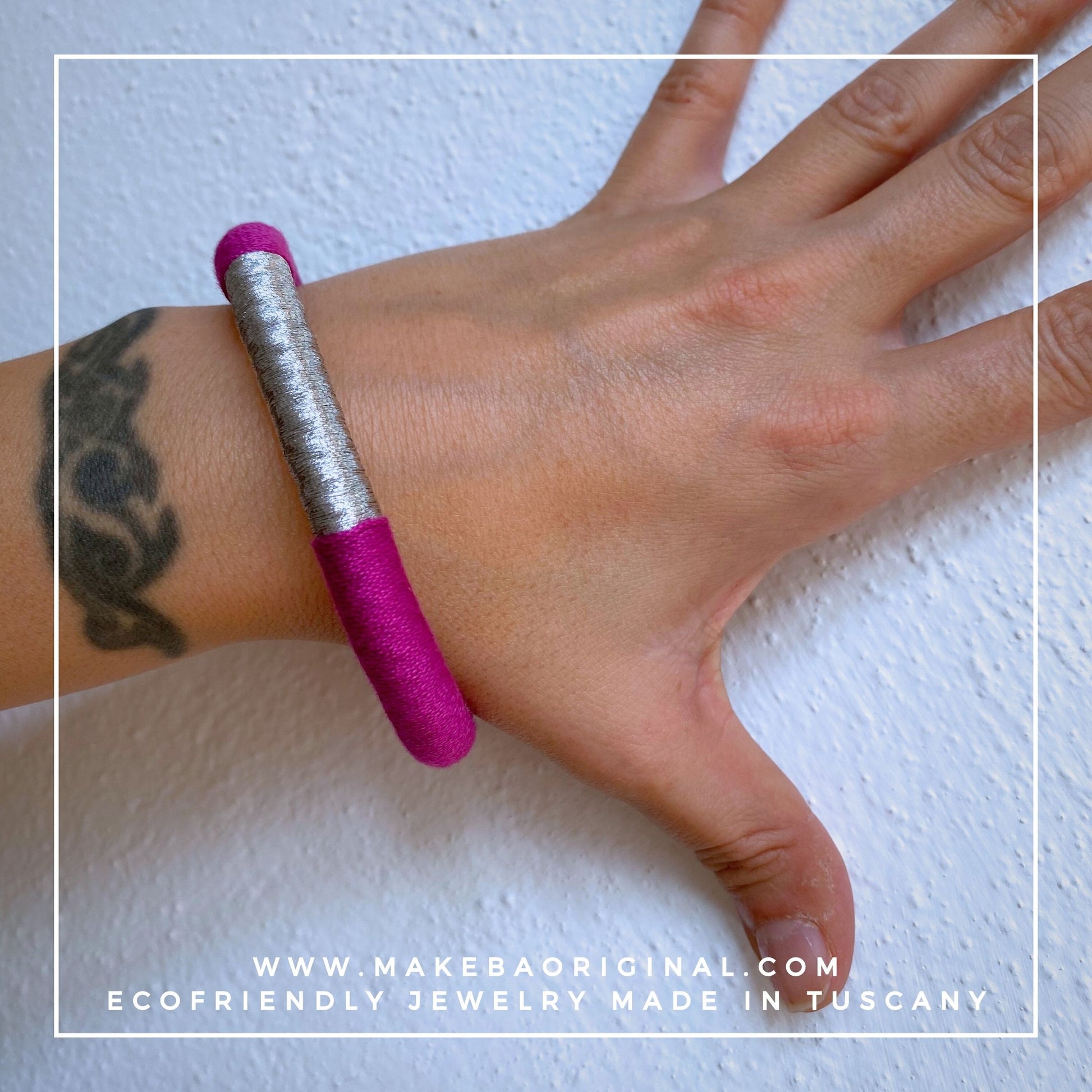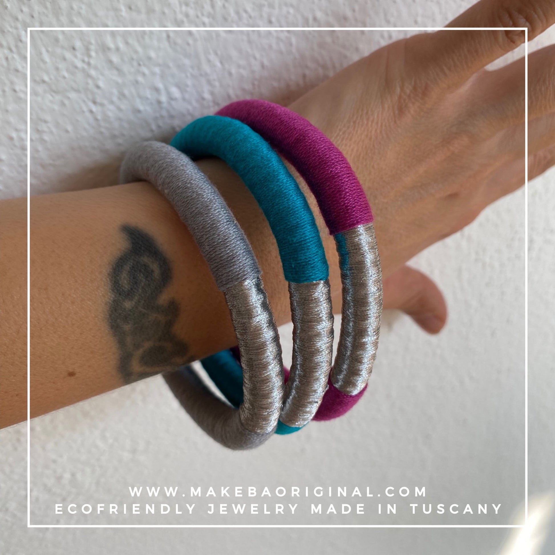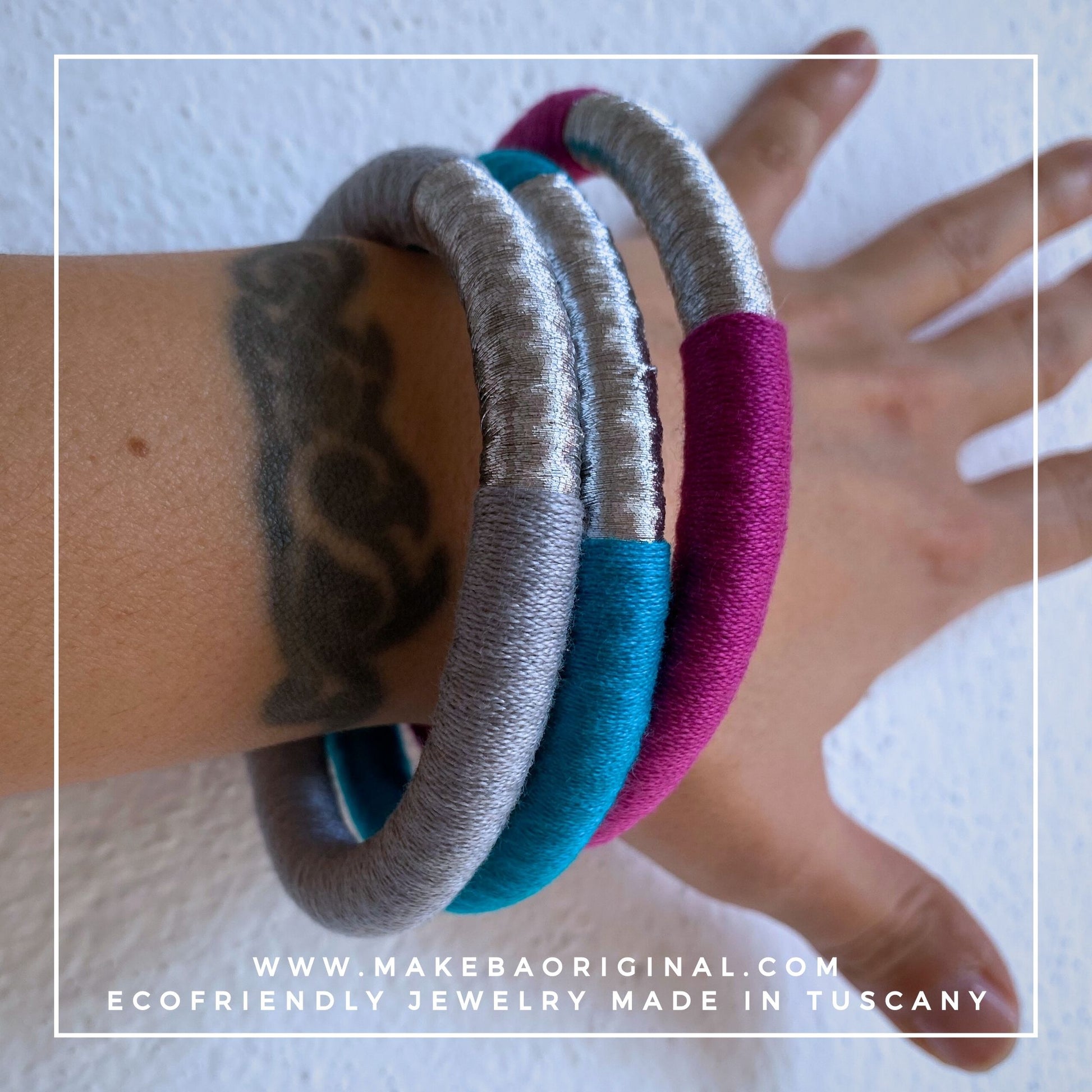 Set di 3 bracciali bangles semi rigidi in cotone.