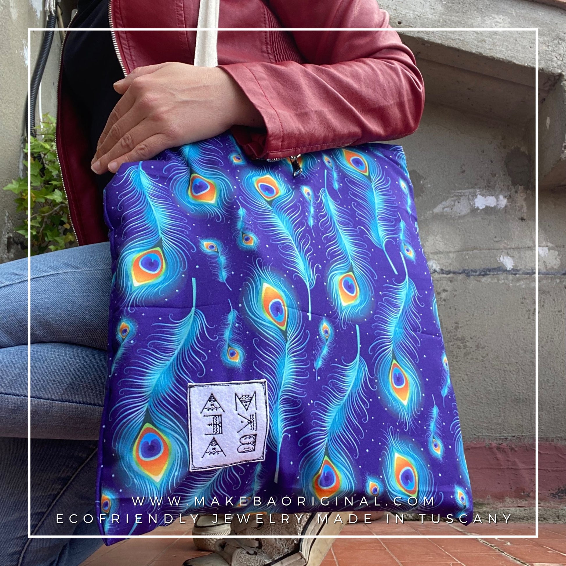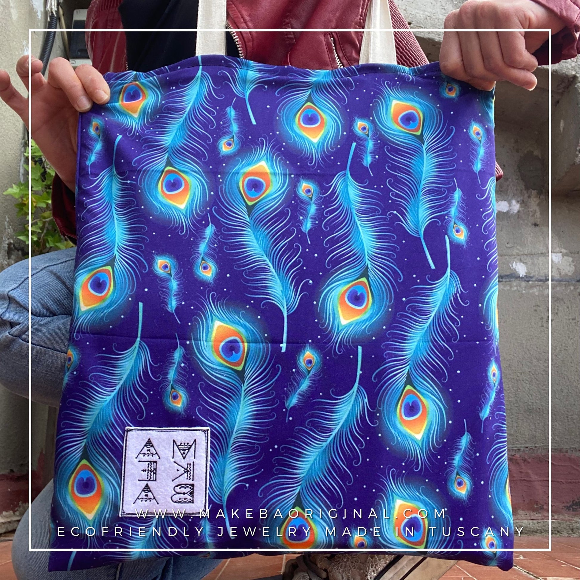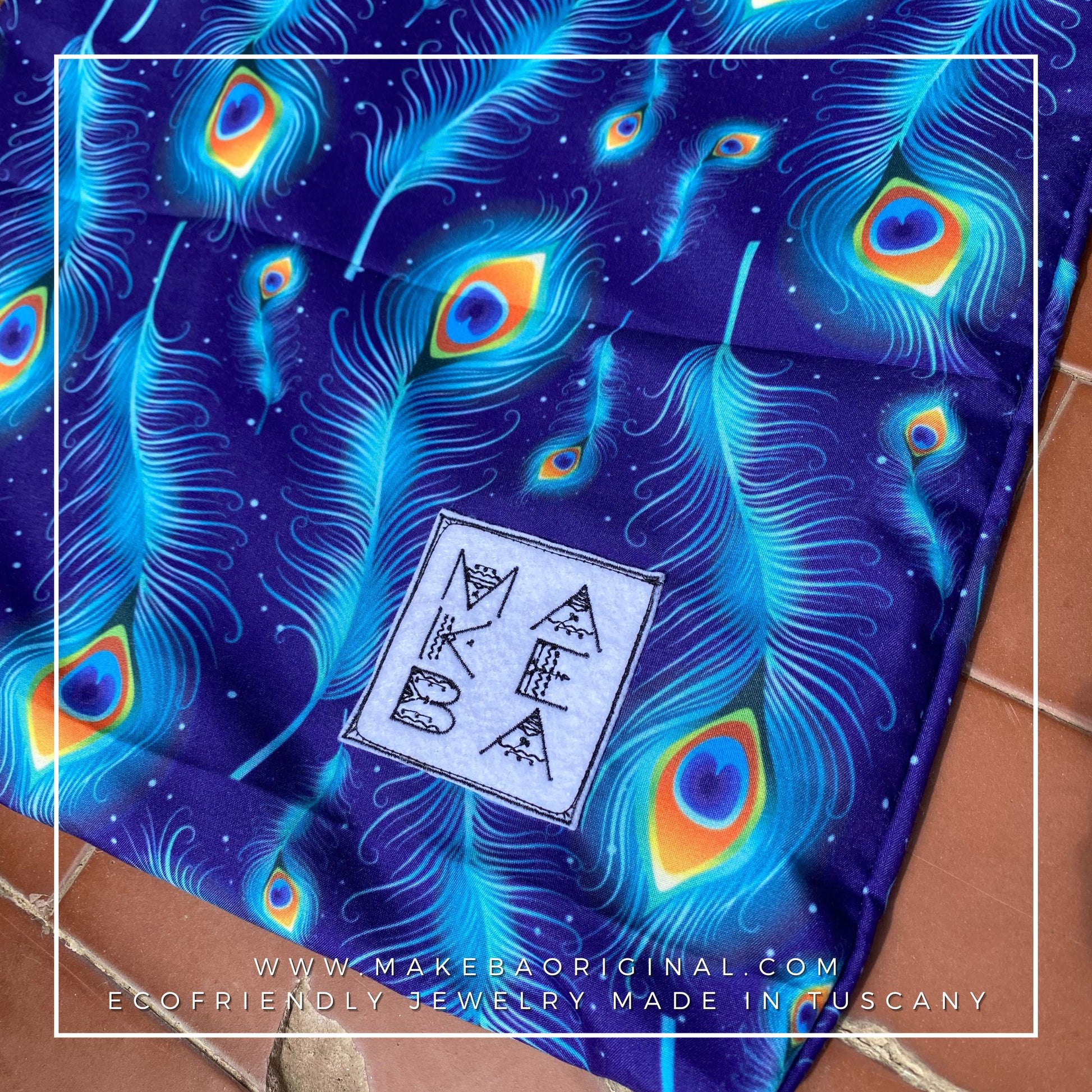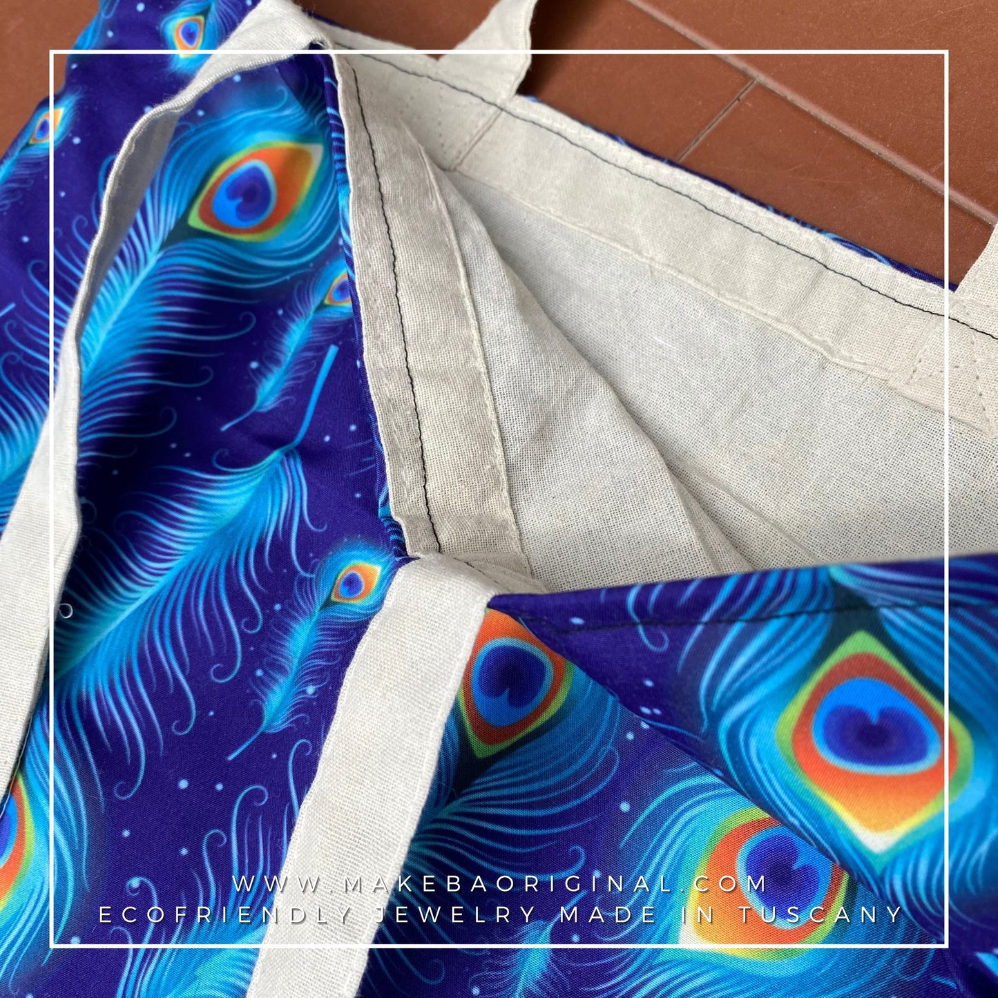 Esterno: tessuto in poliestere con motivo piume di pavone.